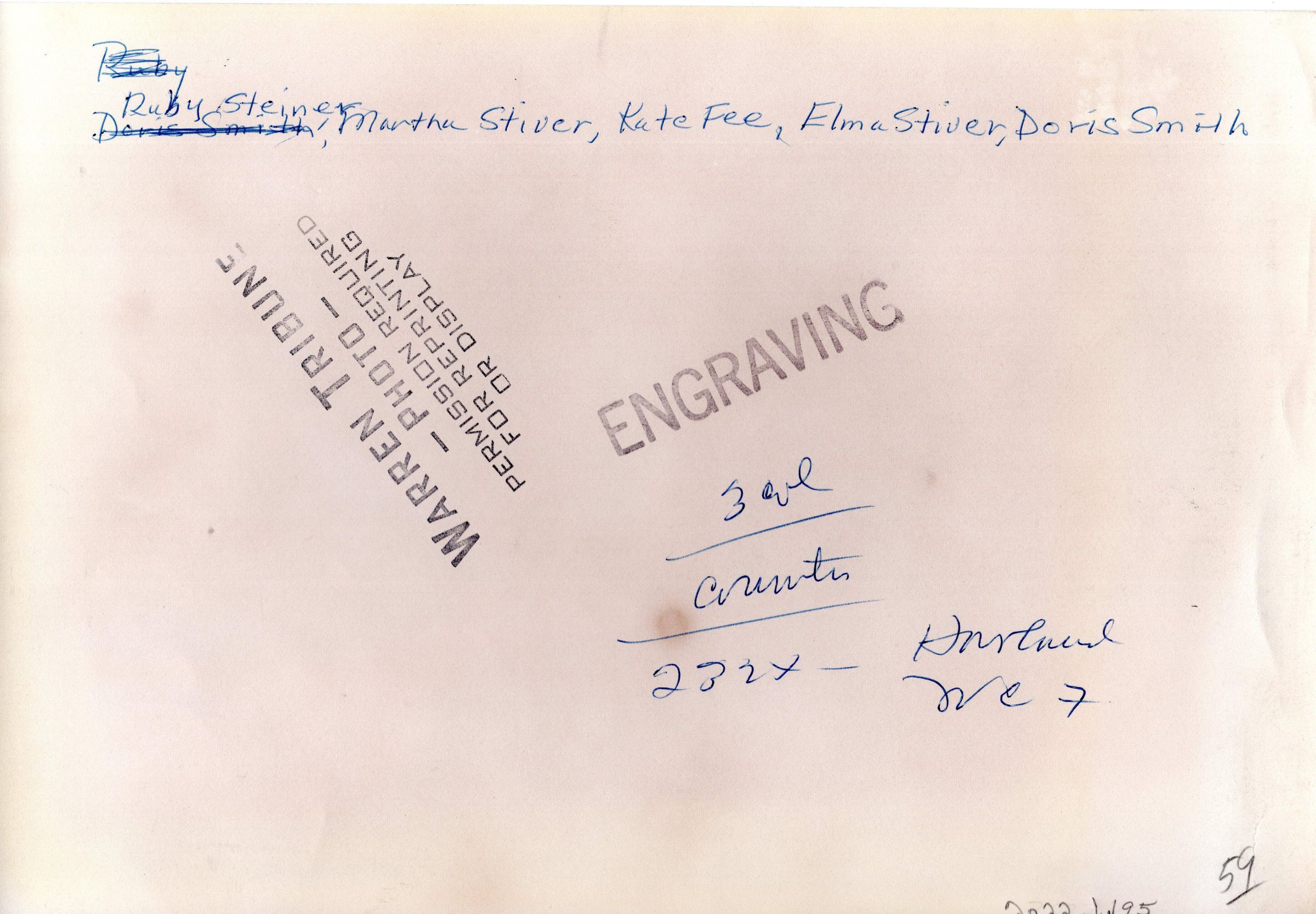 Ruby Steiner, Martha Stiver, Kate Fee, Elma Stiver, Doris Smith
