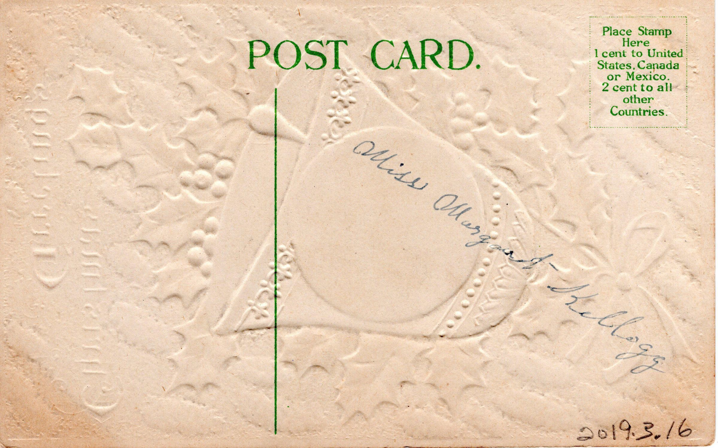 Christmas postcard to Margaret Kellogg