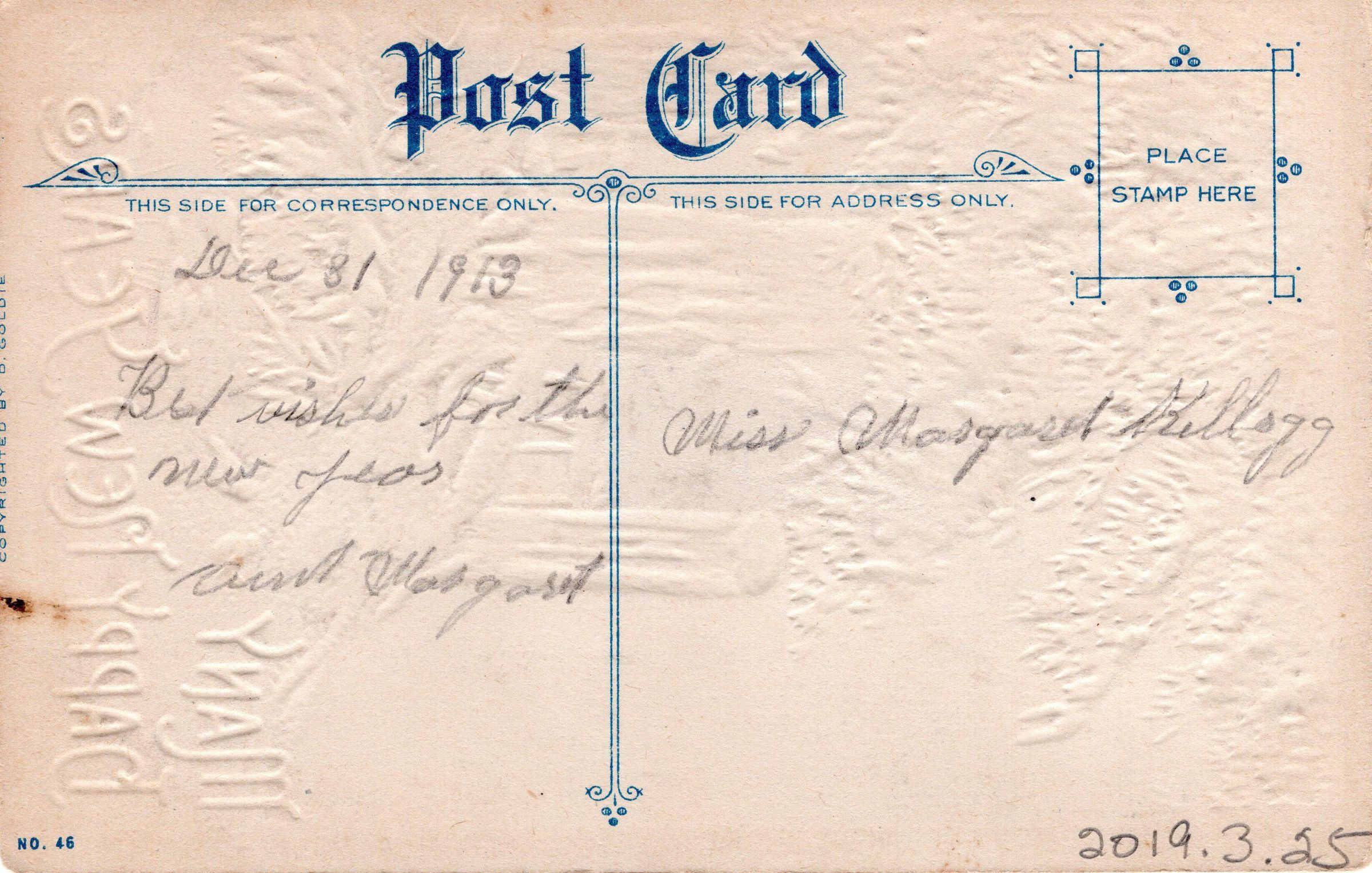 New Year postcard to Margaret Kellogg from Aunt Margaret