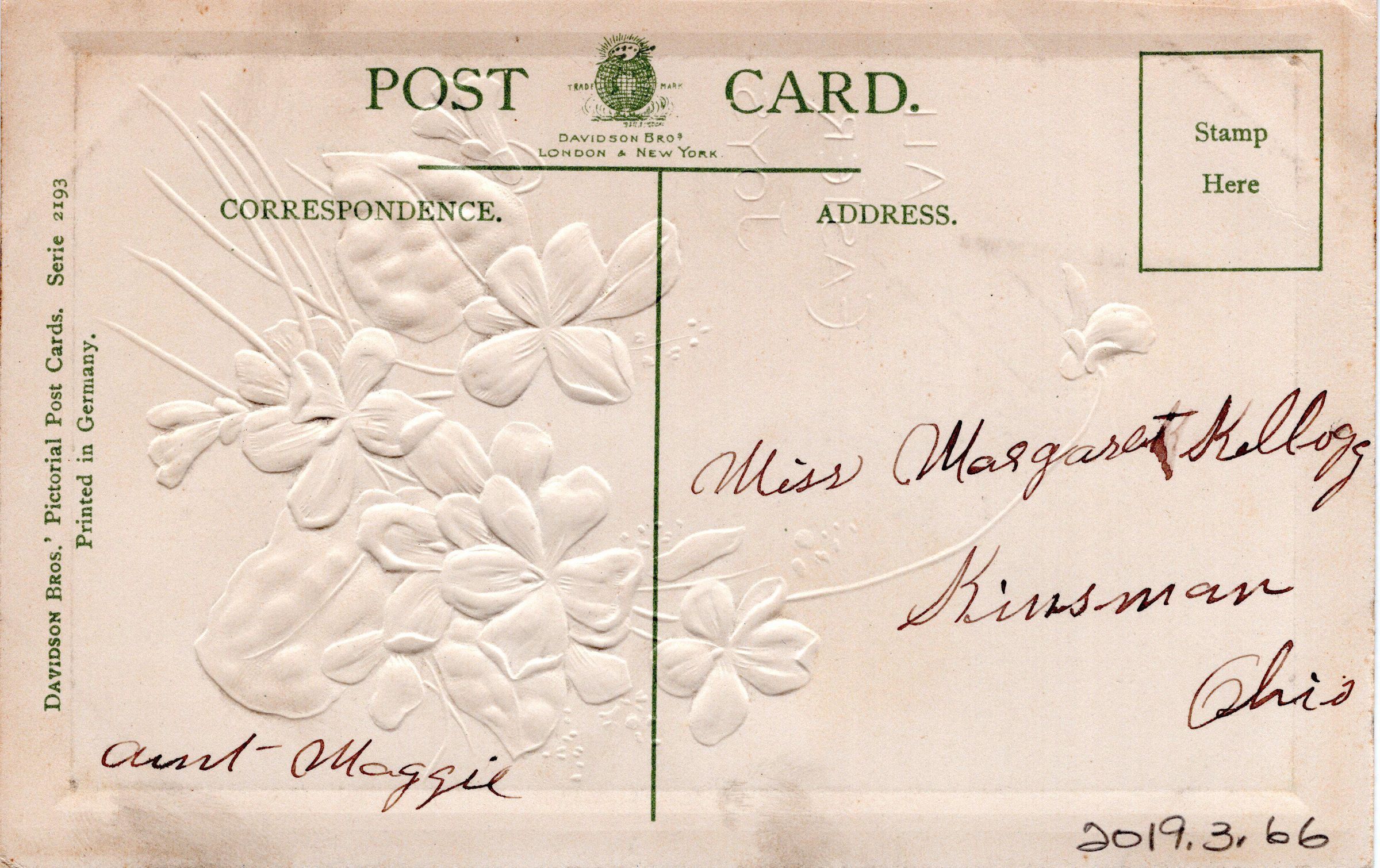 Easter postcard to Margaret Kellogg from her Aunt Maggie