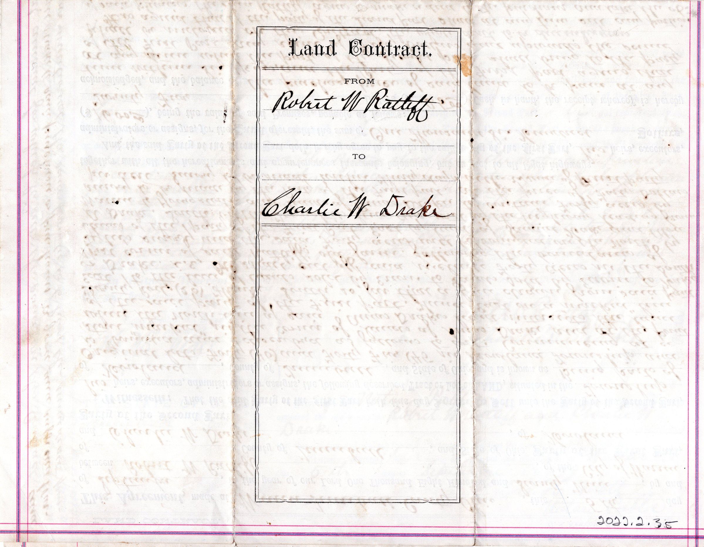 Land Contract Between Robert W Ratliff to Charlie W. DrakeEntry/Object ID