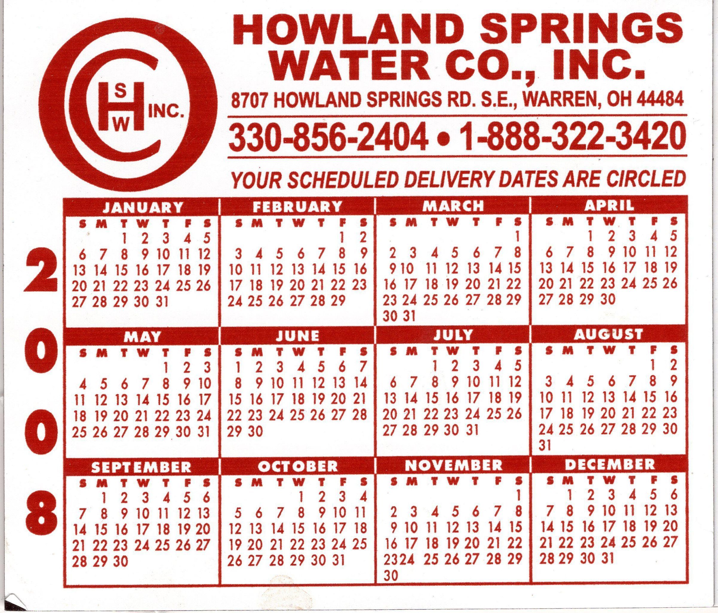 Howland Springs Water Co. Co., Inc. advertising calender magnet