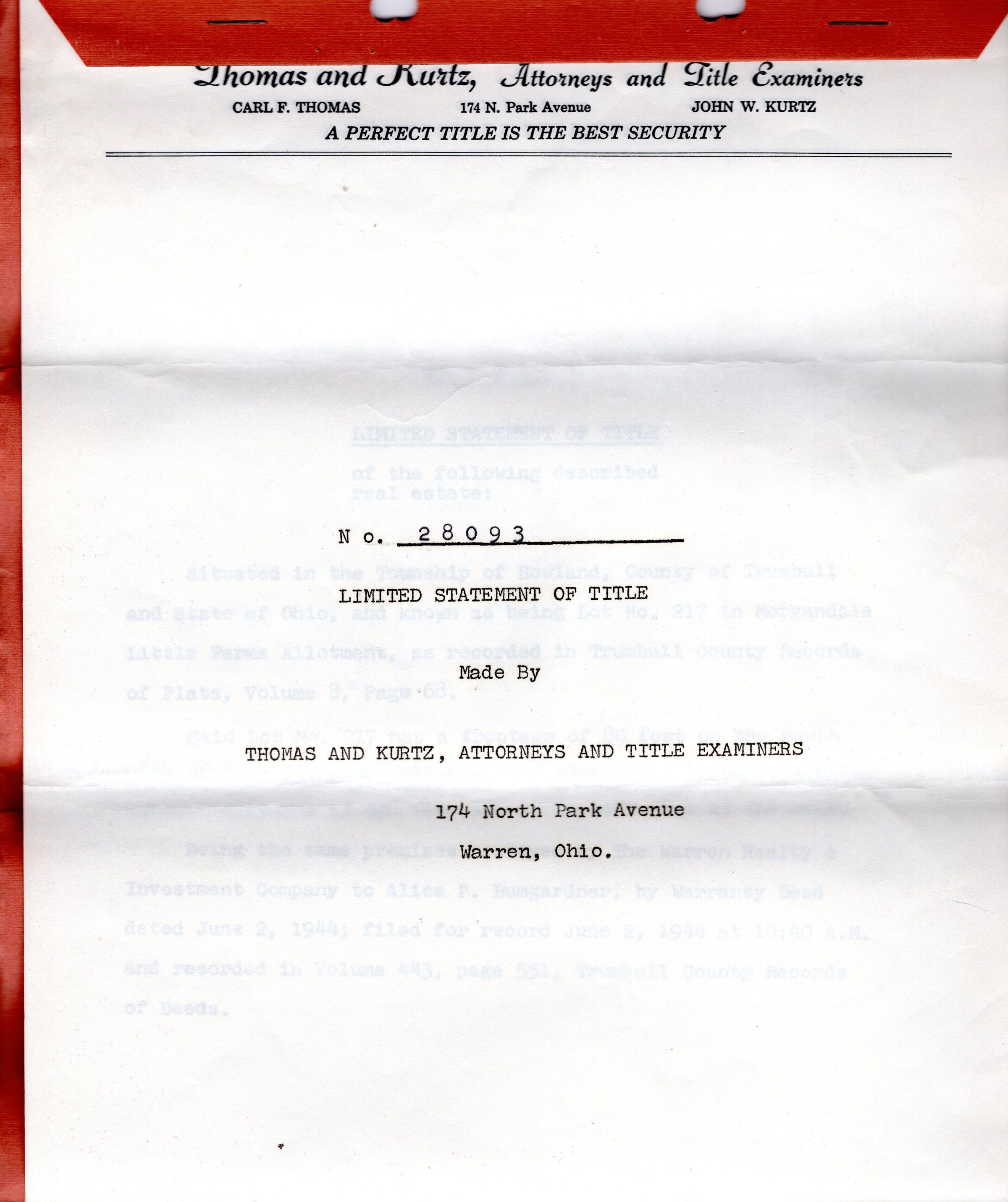 Limited Statement of Title in Morgandale Little Farm Allotment to Orval Waldron and Jane Waldron