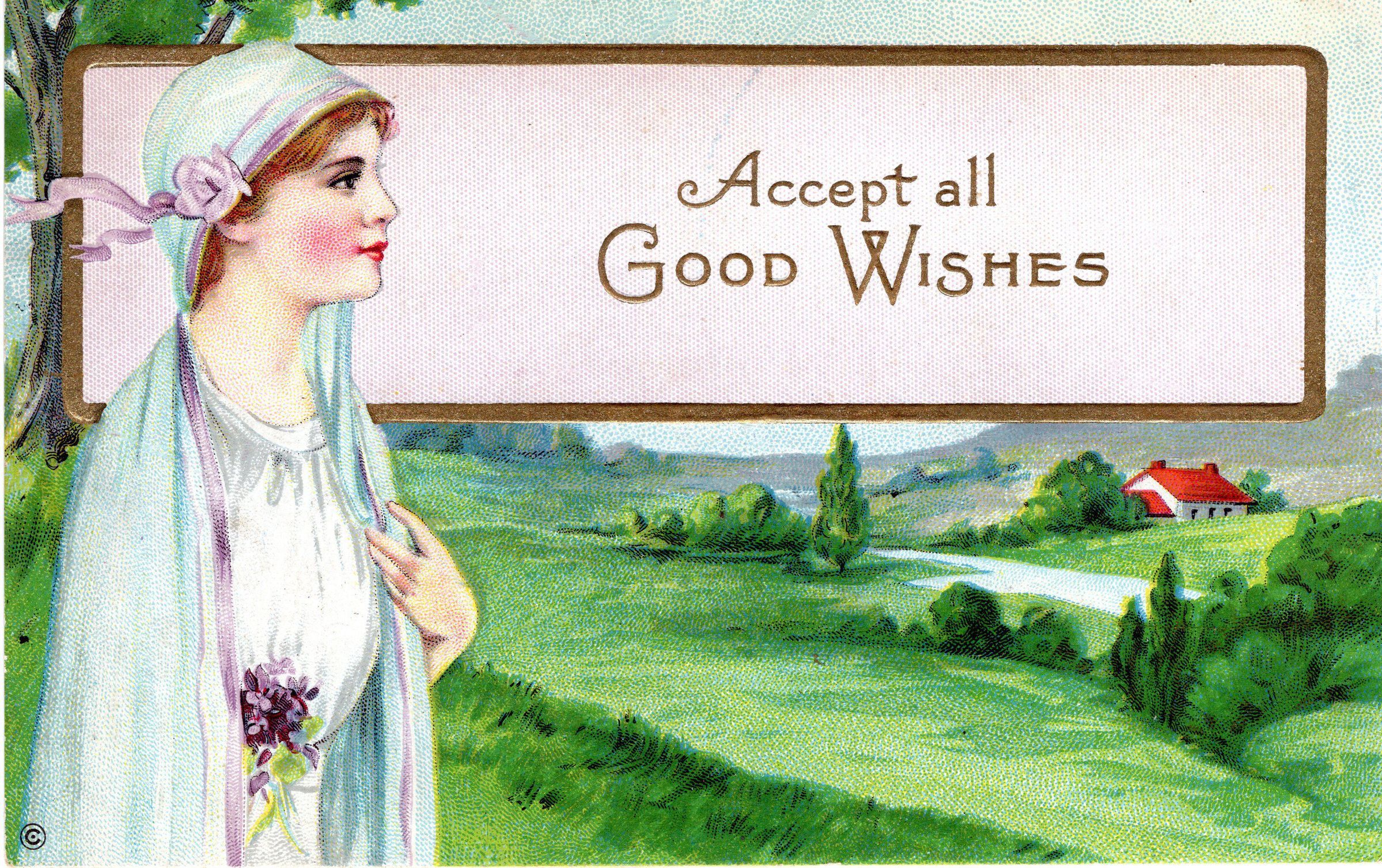 Good Wishes postcard to Margaret Kellogg from Mrs. Herman