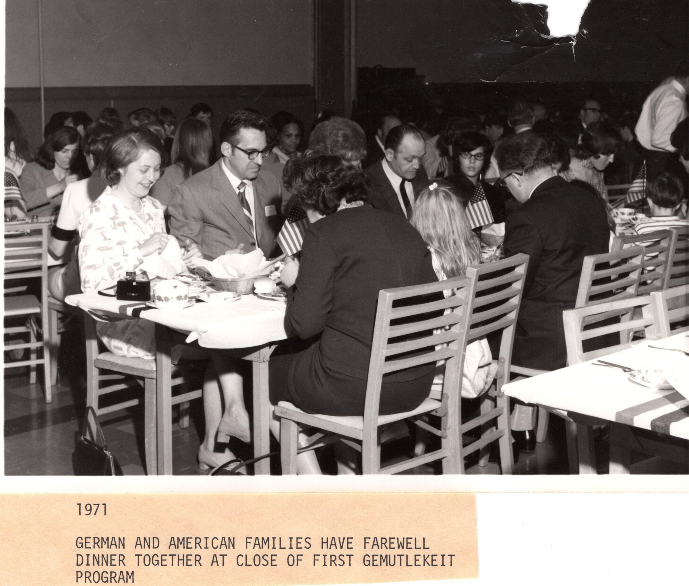 German and American Families have Farewell Dinner Together at Close of First Gemutlekeit Program Kay Brown and Bill Brown facing