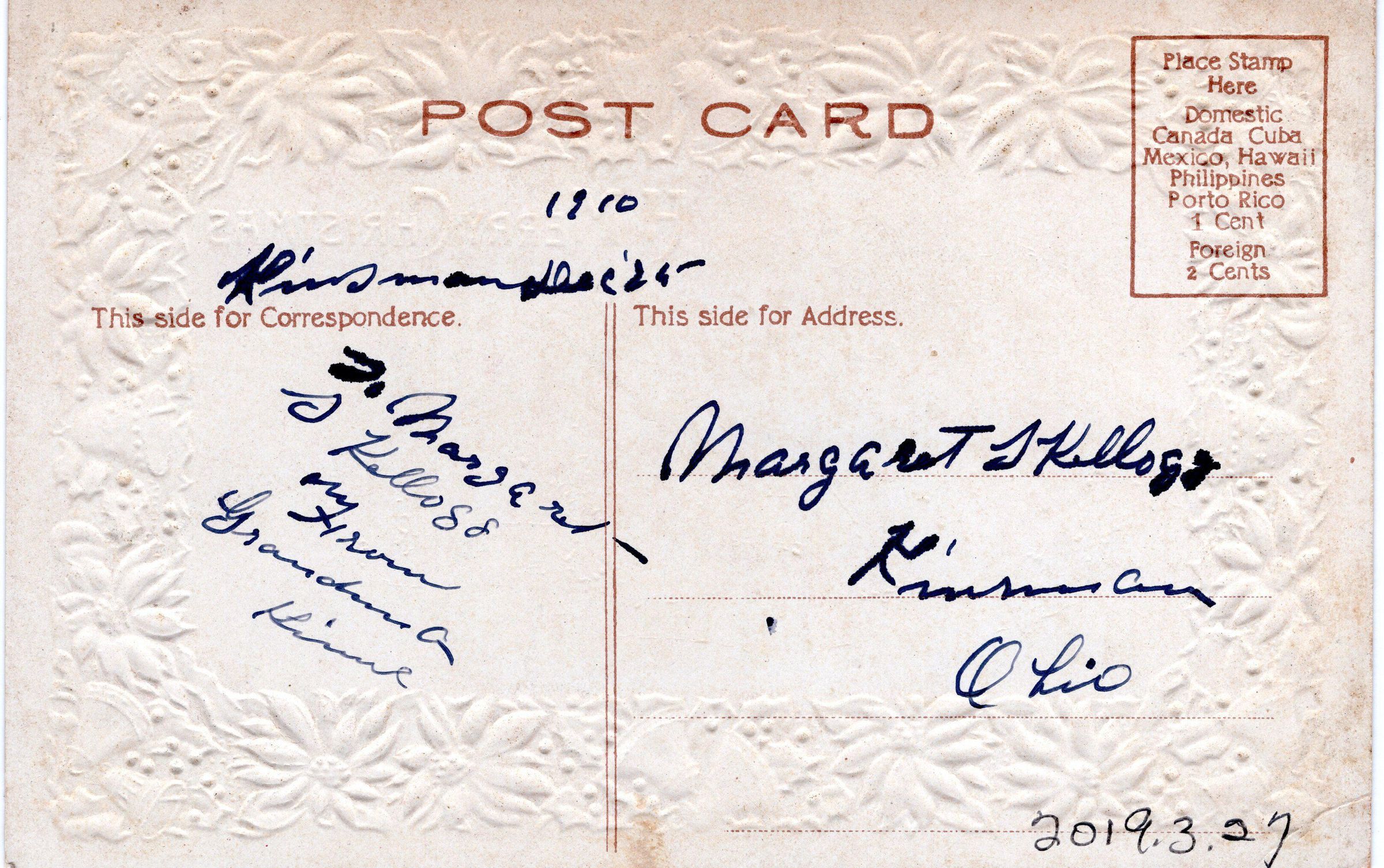 Christmas postcard to Margaret Kellogg from Grandma Kime
