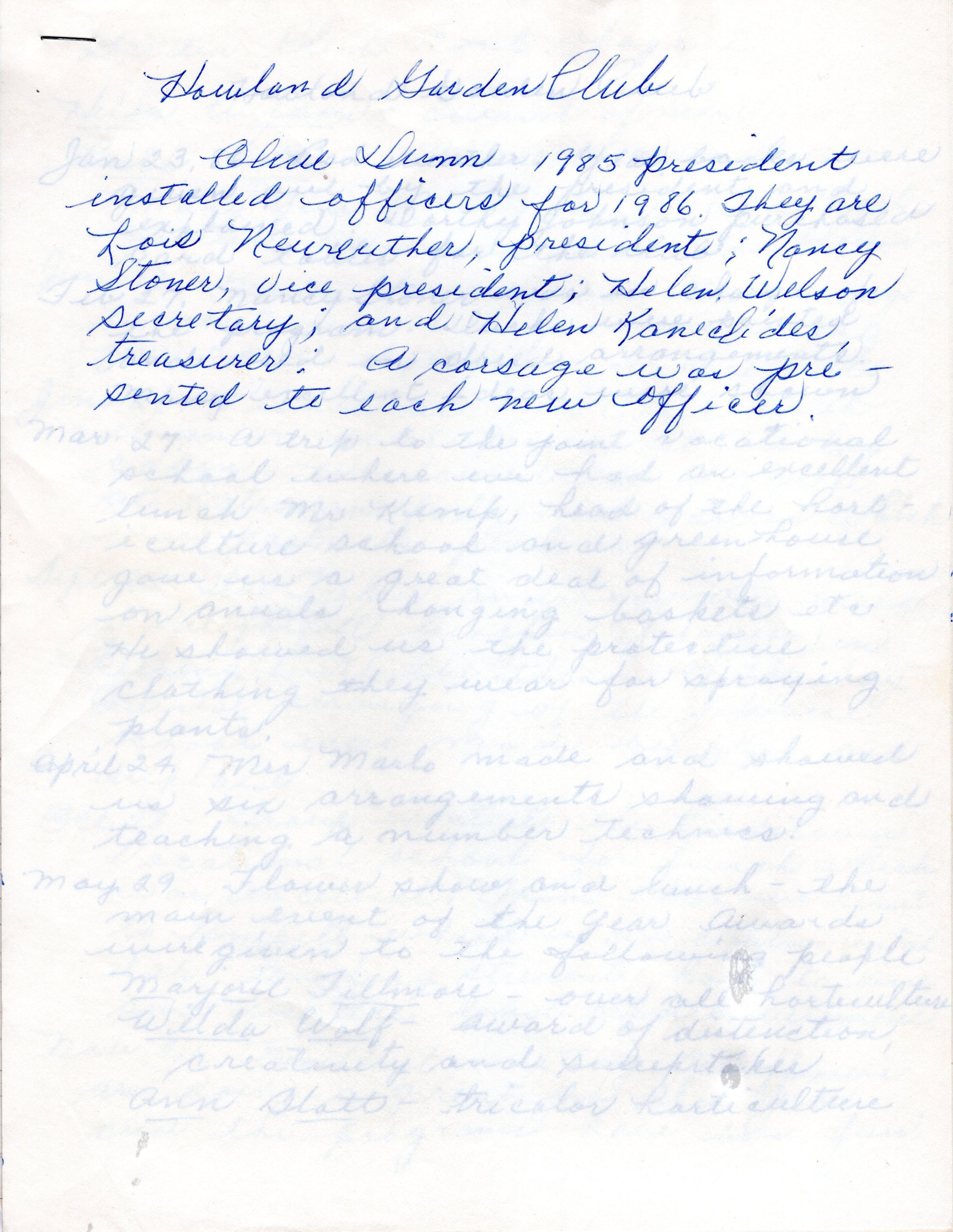 Envelope containing Highlights of Howland Garden Club year 1985-1986