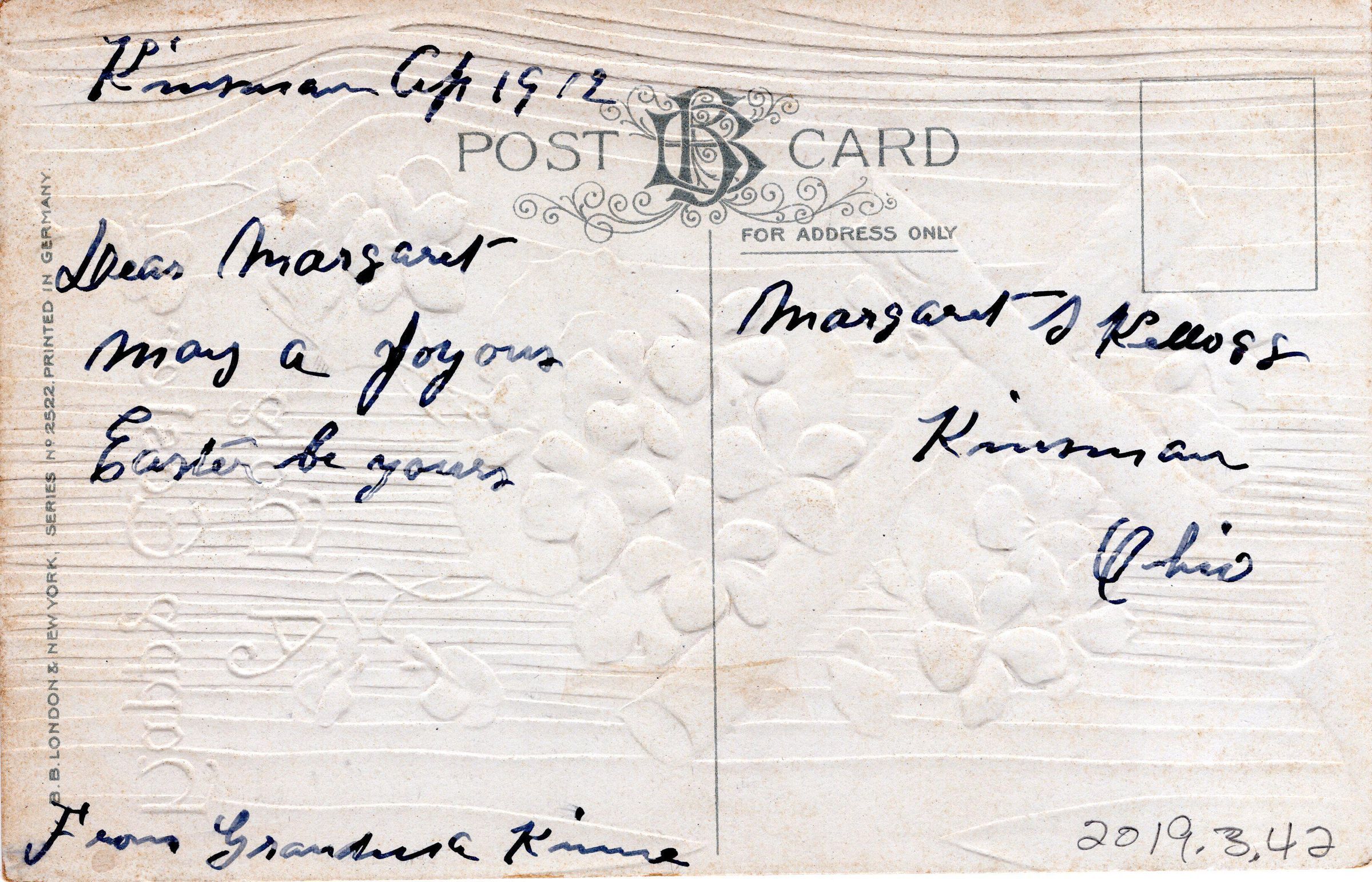 Easter postcard to Margaret Kellogg from her grandmother