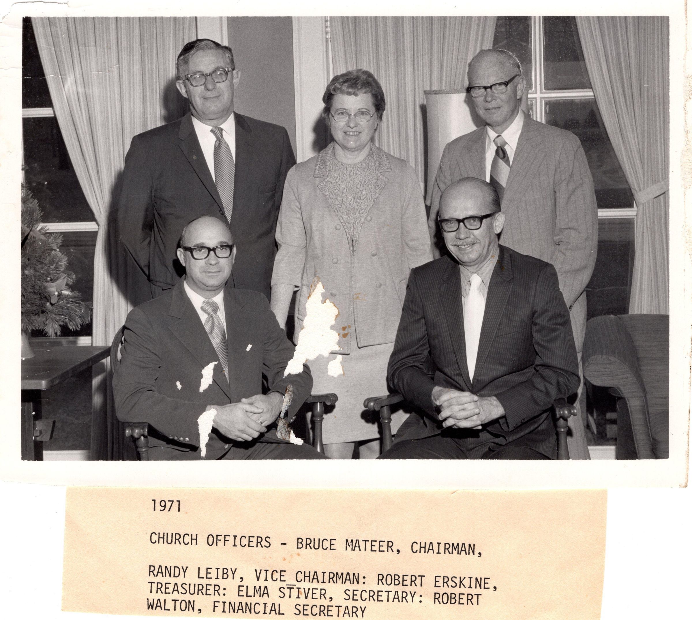 Church Officers 1971 Bruce Mateer, Randy Leiby, Robert Erskine, Elma Stiver, Robert Walton,