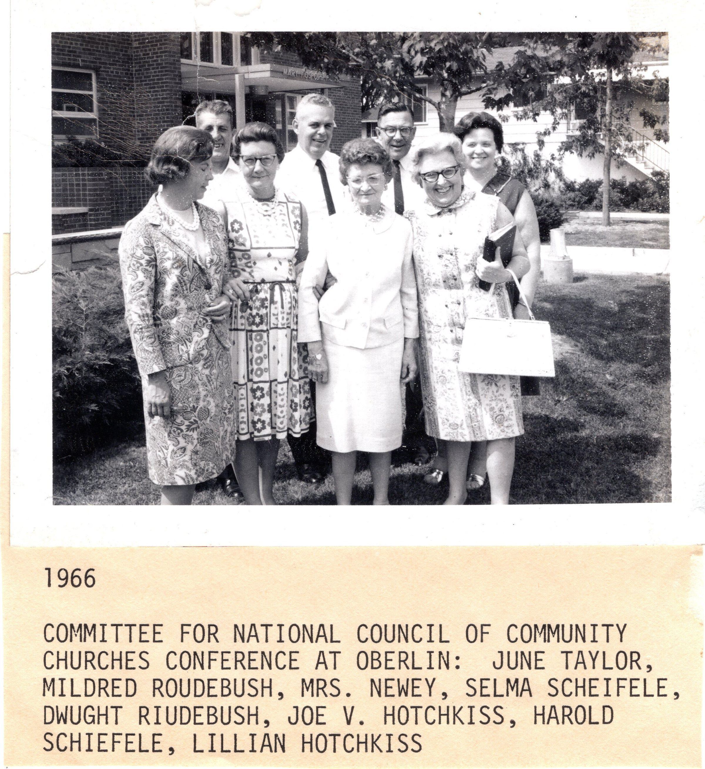 Committee for National Council of Community Churches Conference at Oberlin:  June Taylor, Mildred Roudebush, Mrs. Newey, Selma Scheifele, Dwight Roudebush, Joe V. Hotchkiss, Harold Scheifele, Lillian Hotchkiss
