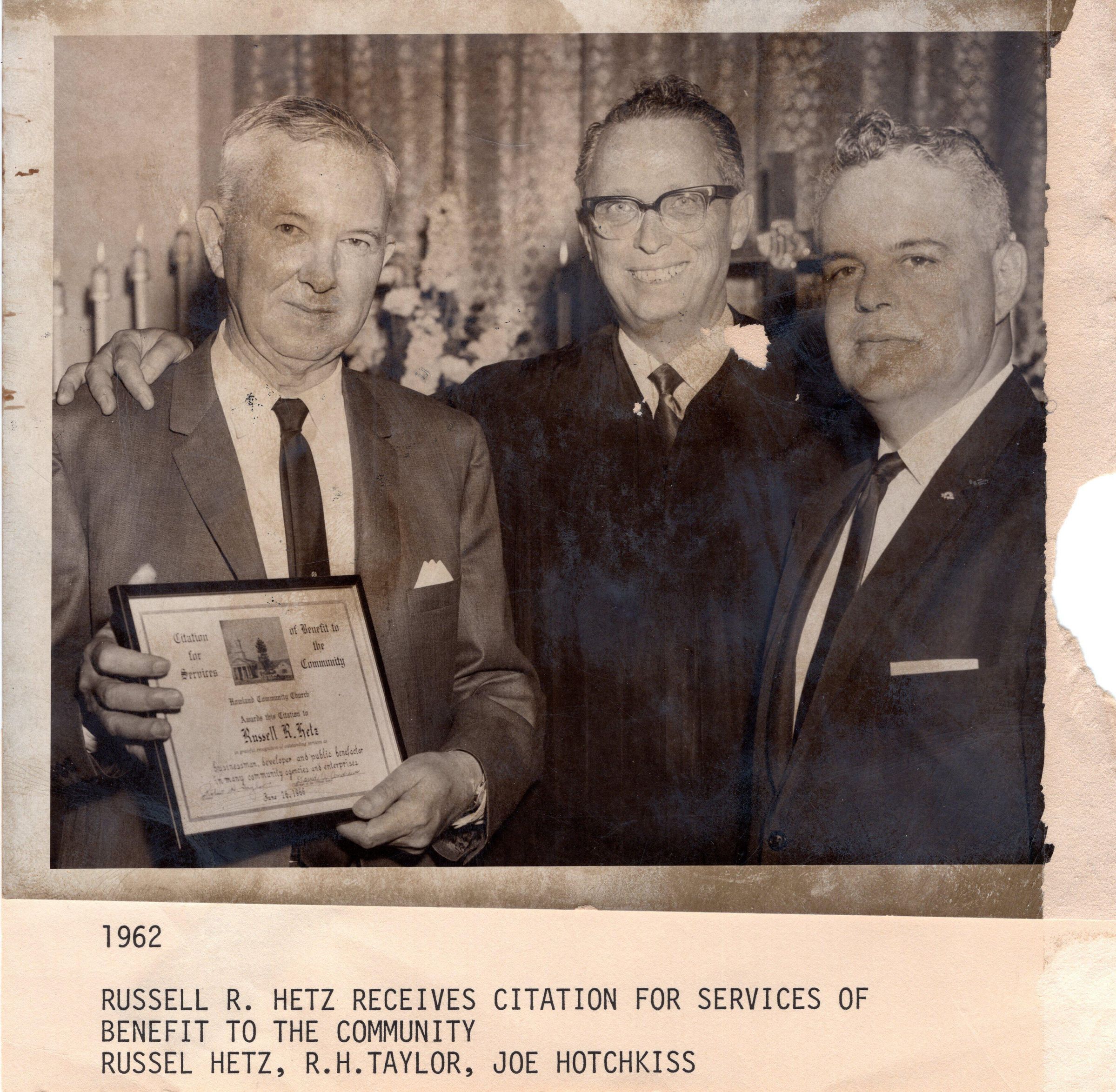 Russell R. Hetz receives citation for Services of Benefit to the Community: Russell Hetz, R.H. Taylor, Joe Hotchkiss