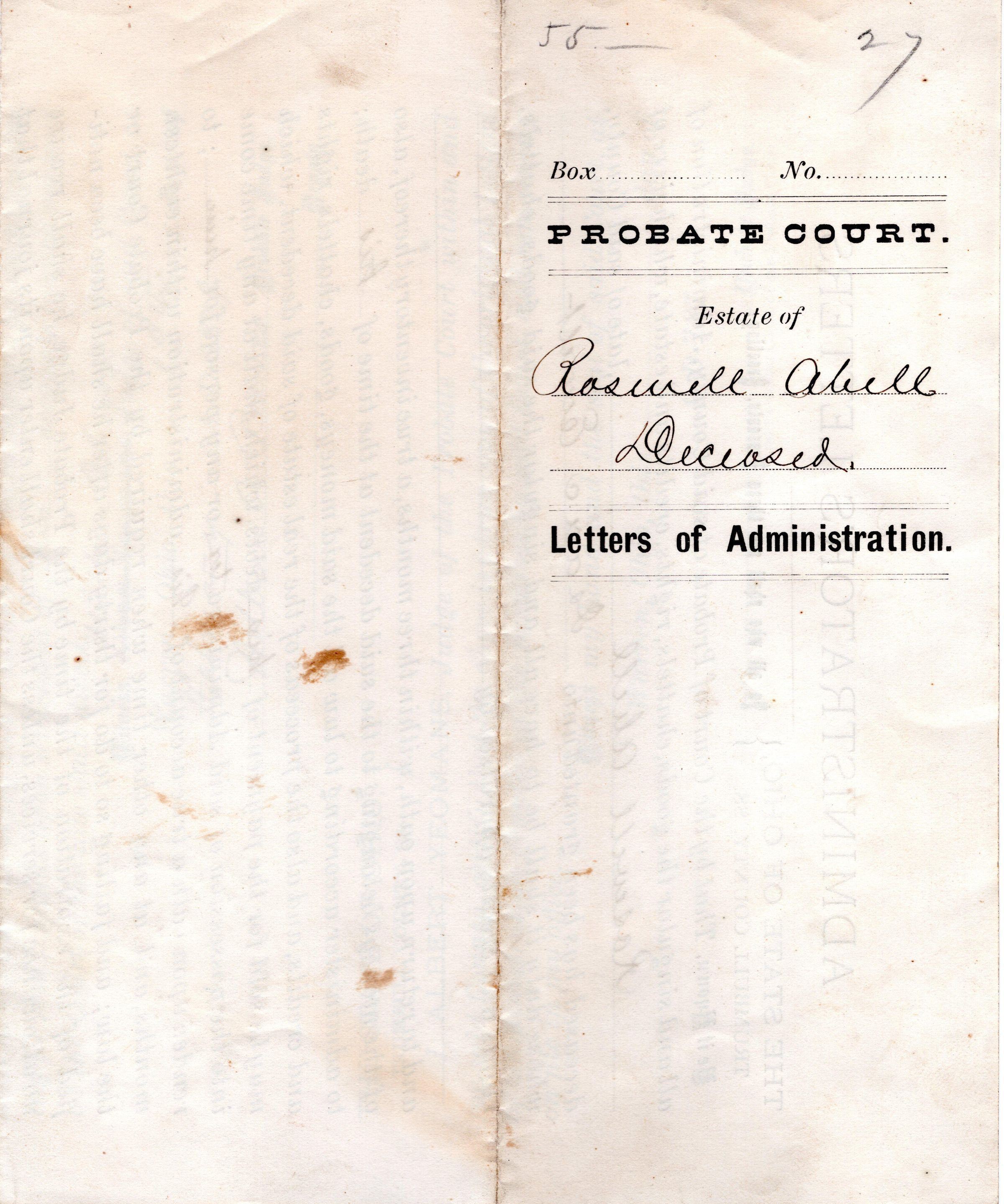 Letters of Administration in the estate of Roswell Abell naming Isaac Ewalt as the Administrator.