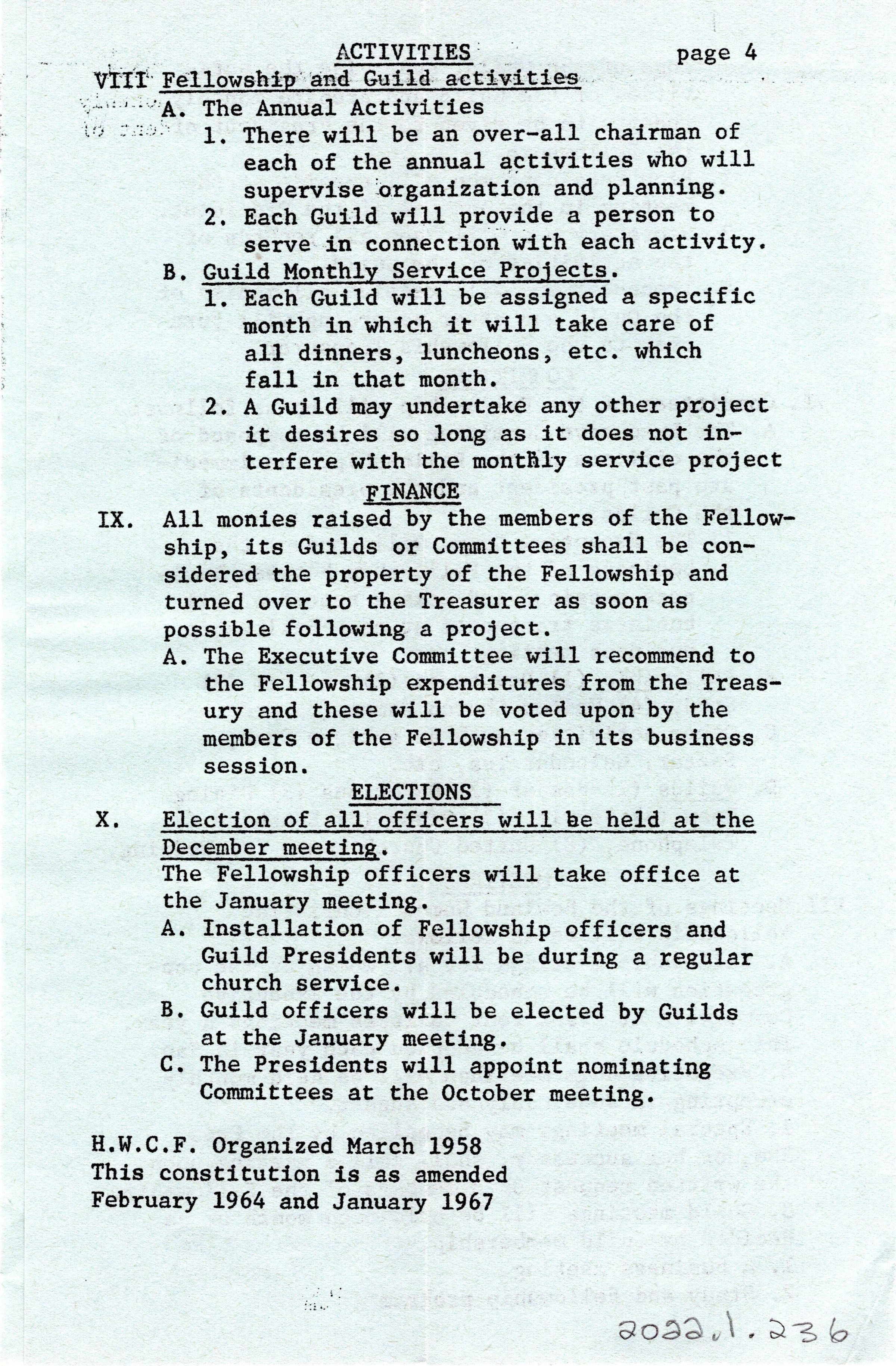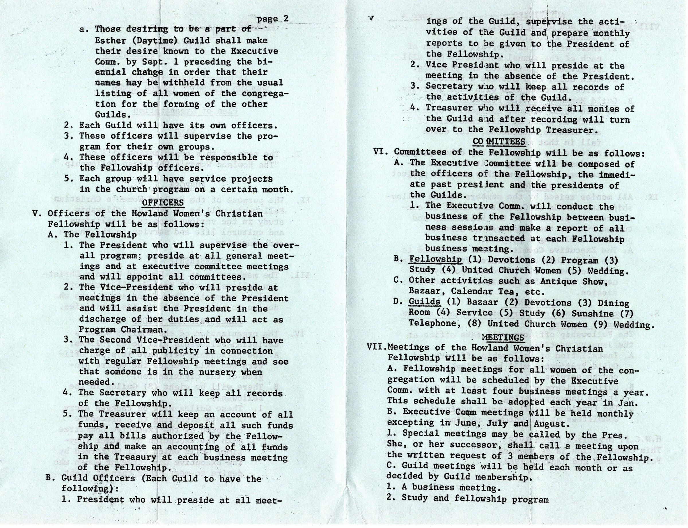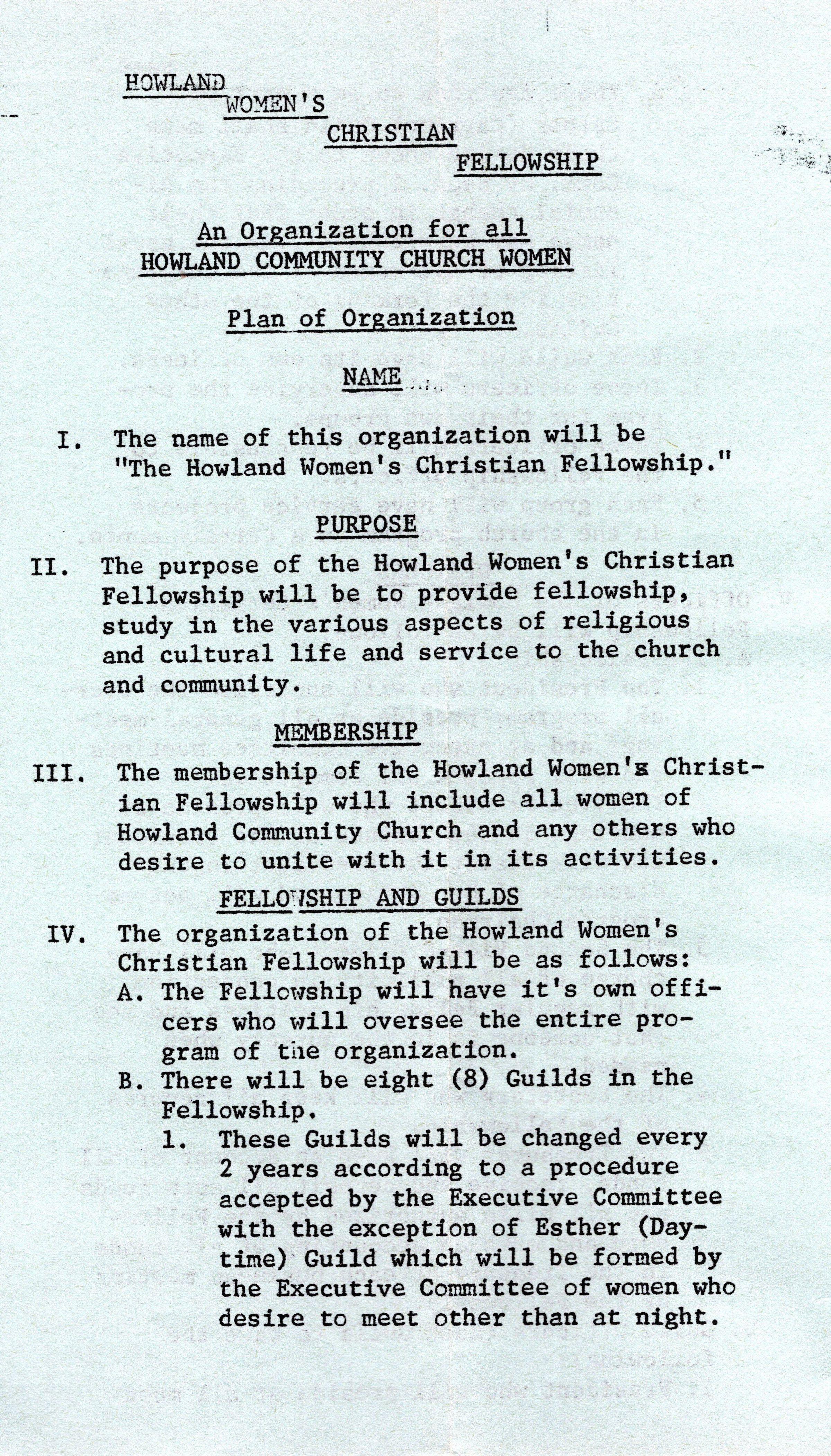 Howland Women's Christian Fellowship 1958 Plan of organization