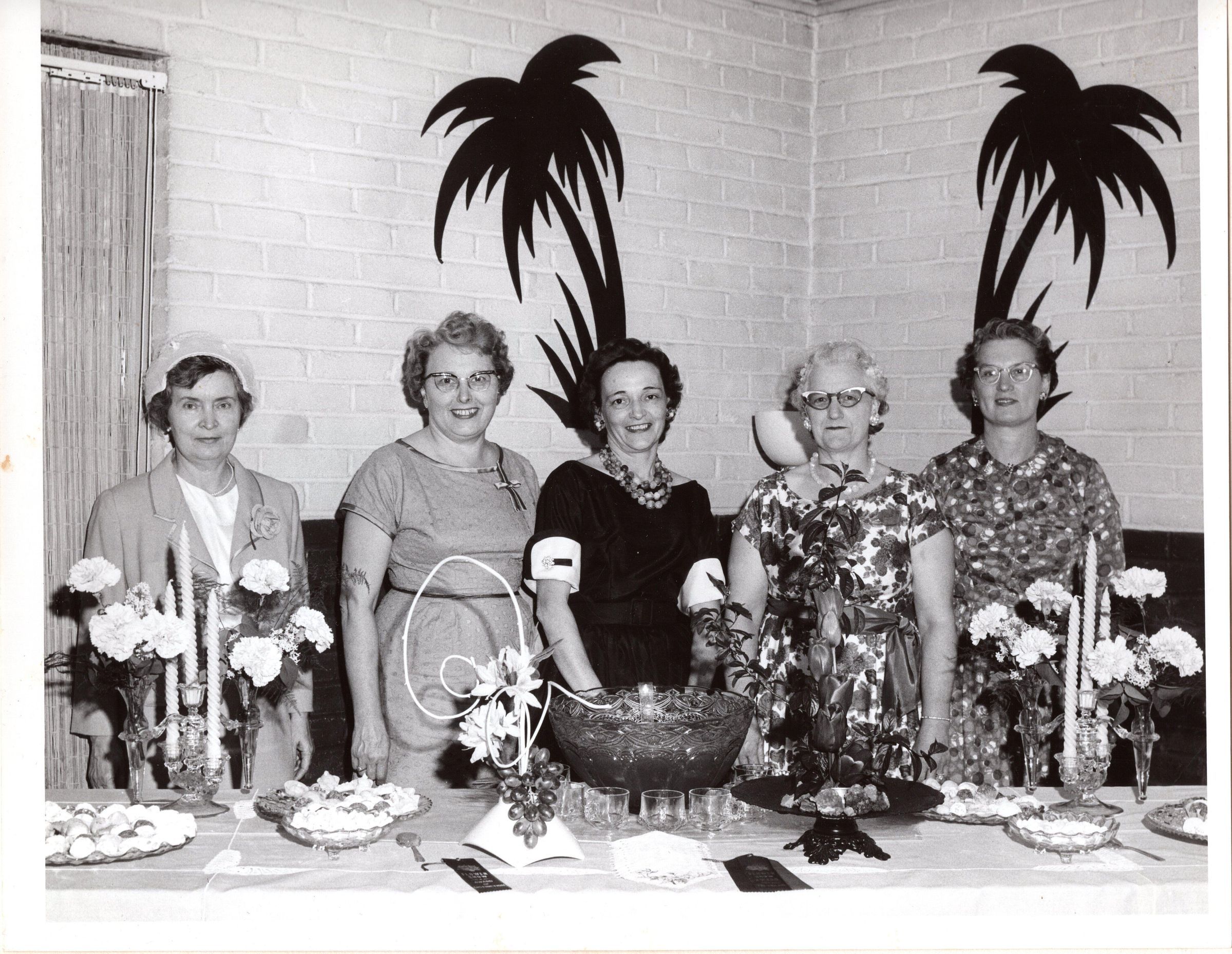 Howland Garden Club photograph of Flower Show at Grange with Officers at the Tea Table with Award of Distinction and Tri-Color ArrangementsAcquisition
