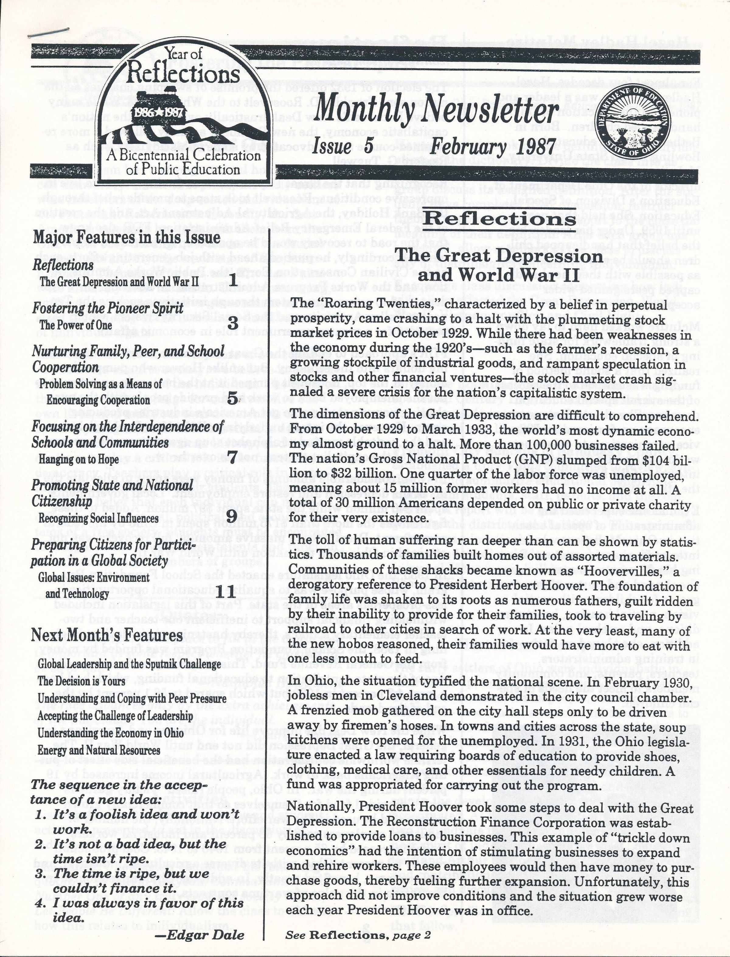 Issue 5, Public Education Bicentennial Newsletter, 1987Entry/Object ID