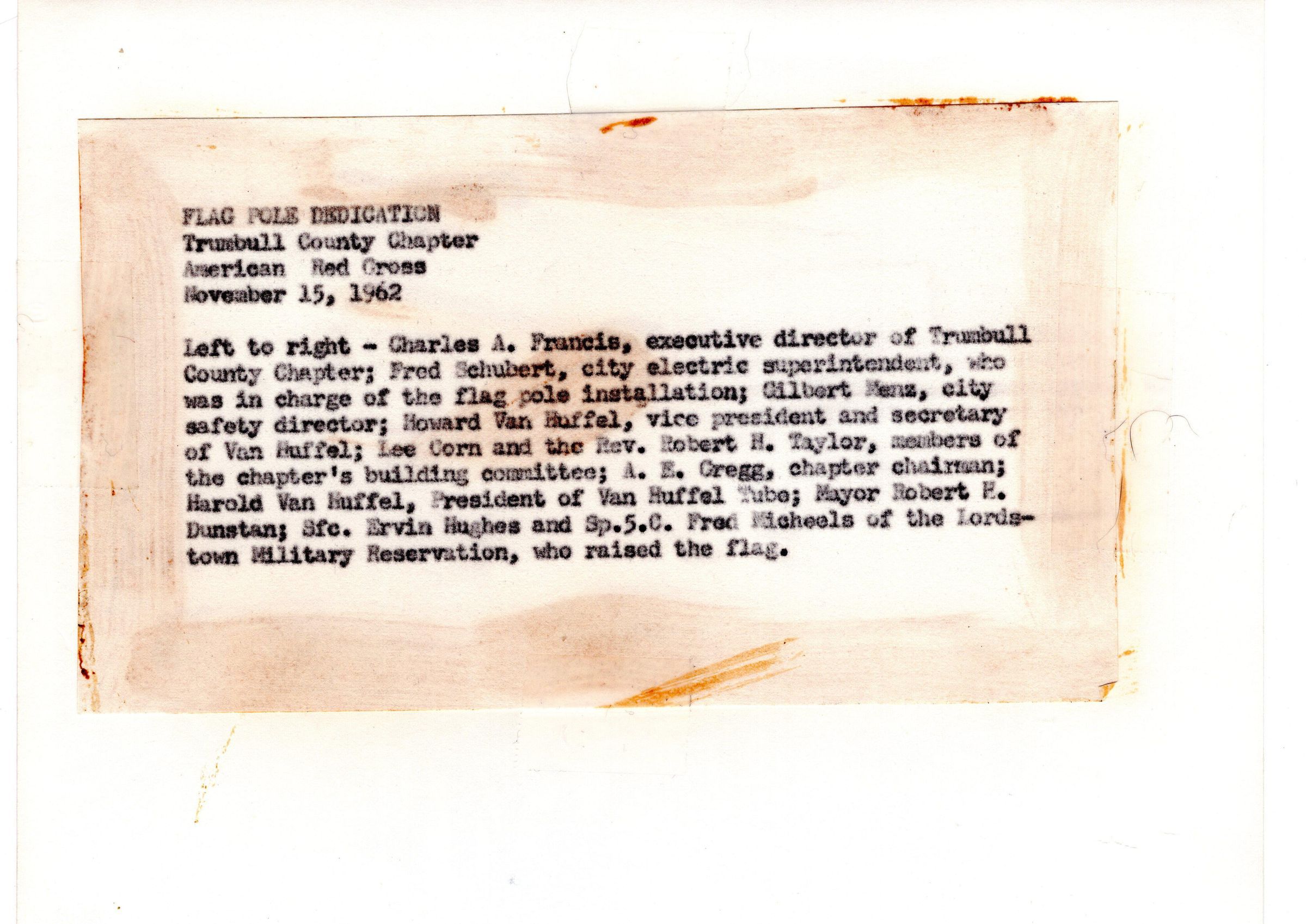 Flag Pole Dedication 15 Nov 1962 Trumbull County Red Cross Rev. Robert Taylor, 6th from left