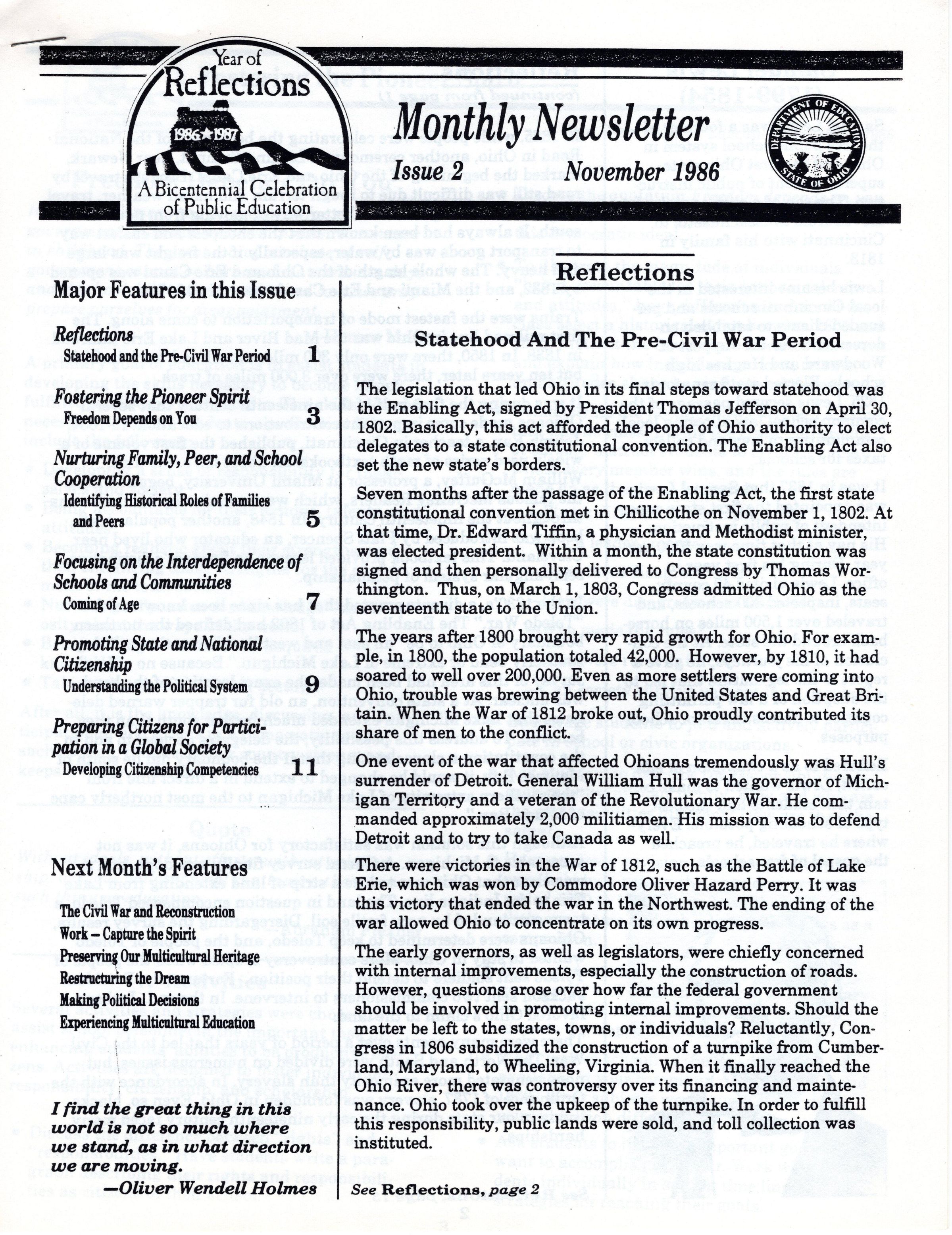 Issue 2 Public Education Bicentennial Newsletter, 1986Entry/Object ID
