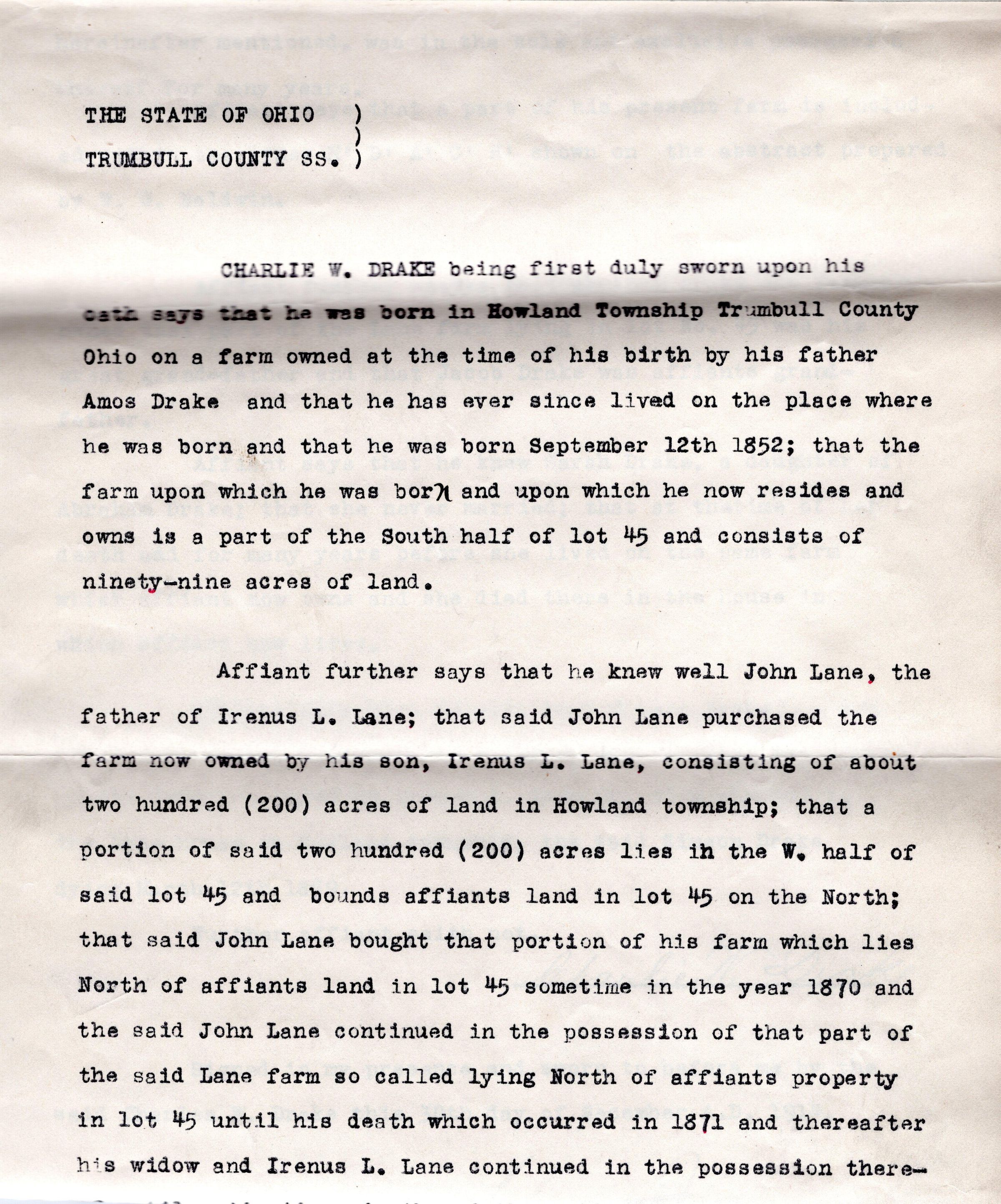 Court Document for Hearing Pertaining to Charlie W. Drake and His Property Dated January 2, 1915Acquisition