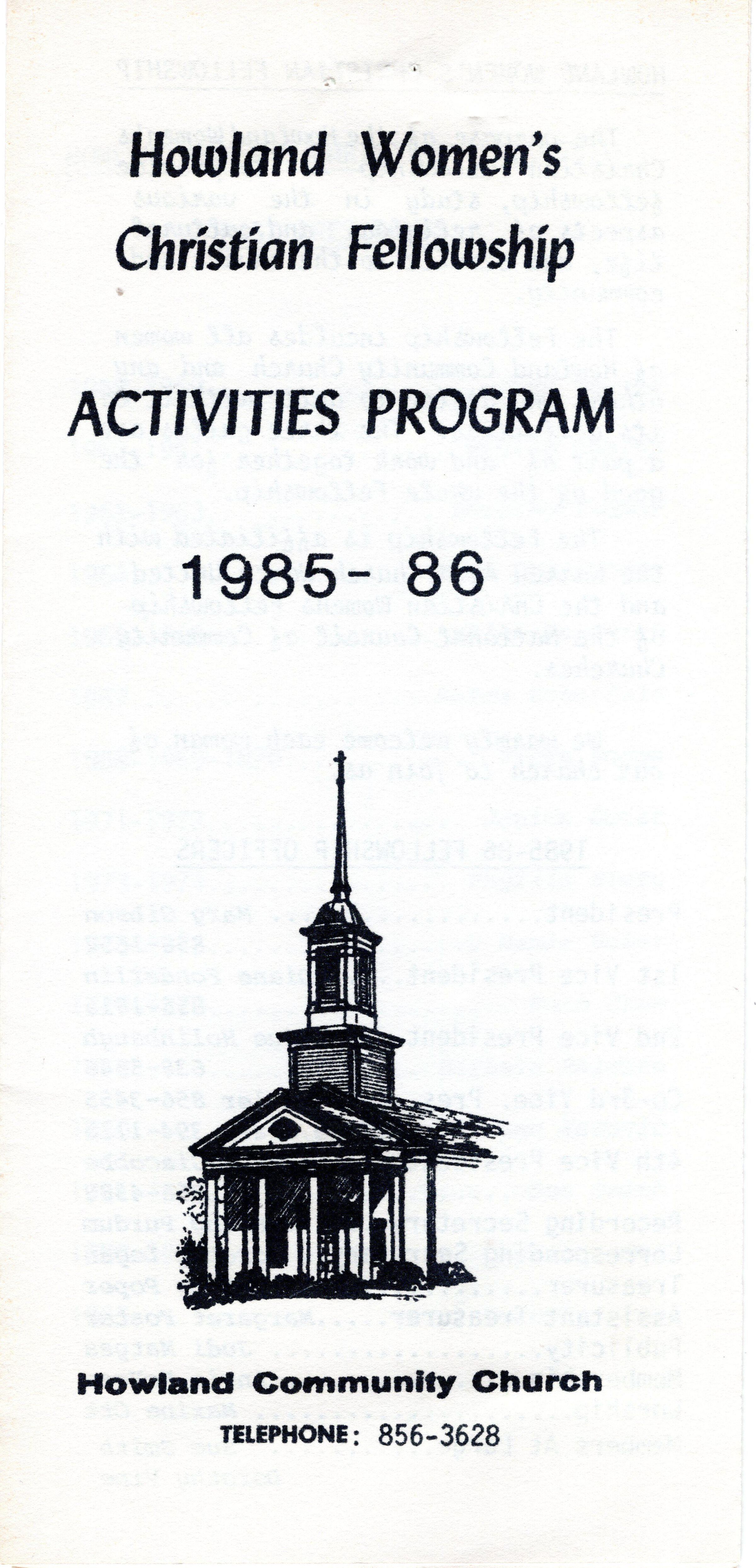 Howland Women's Christian Fellowship Activities Program 1985-86
