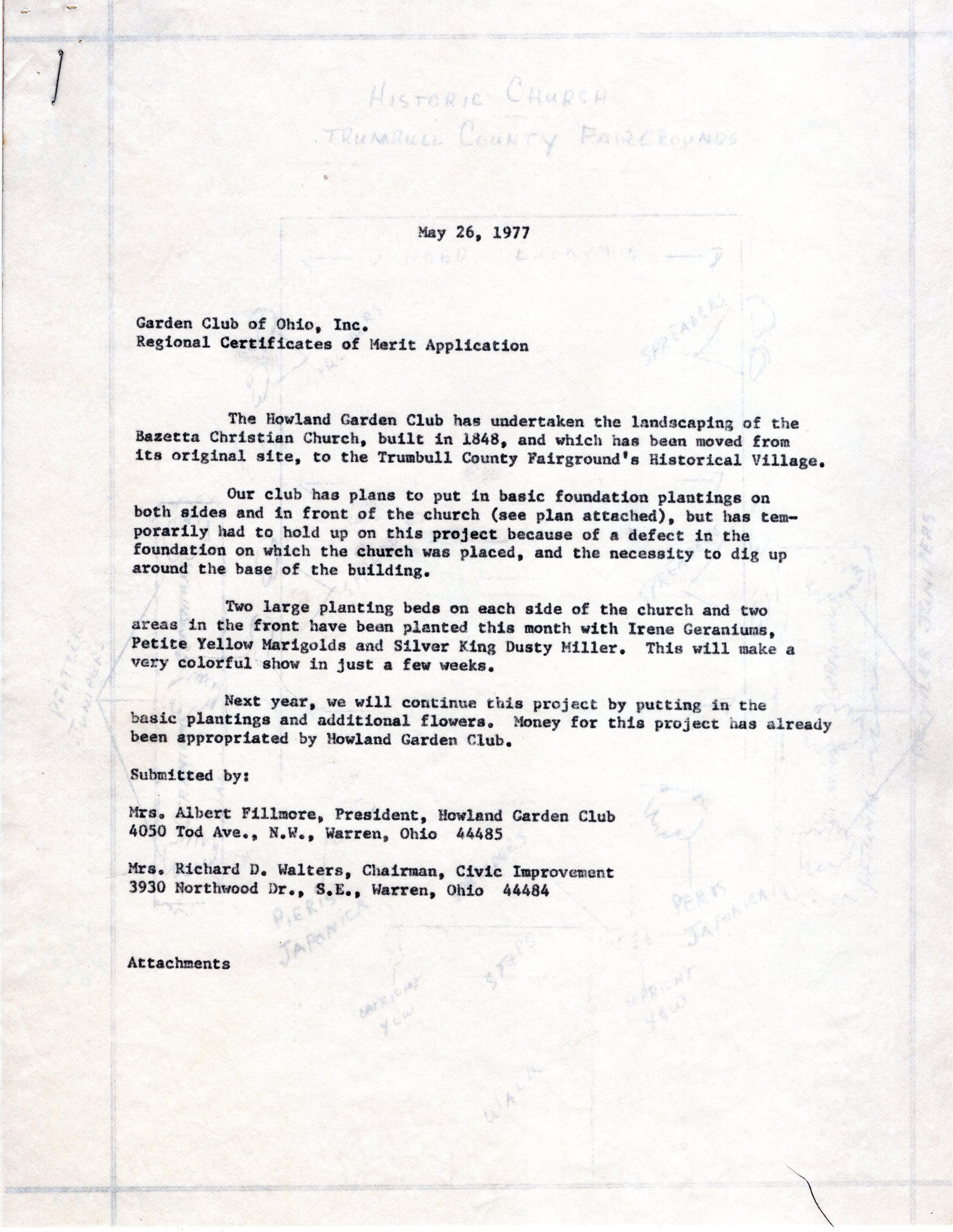 Letter and drawing regarding gardening project done by Howland Garden Club