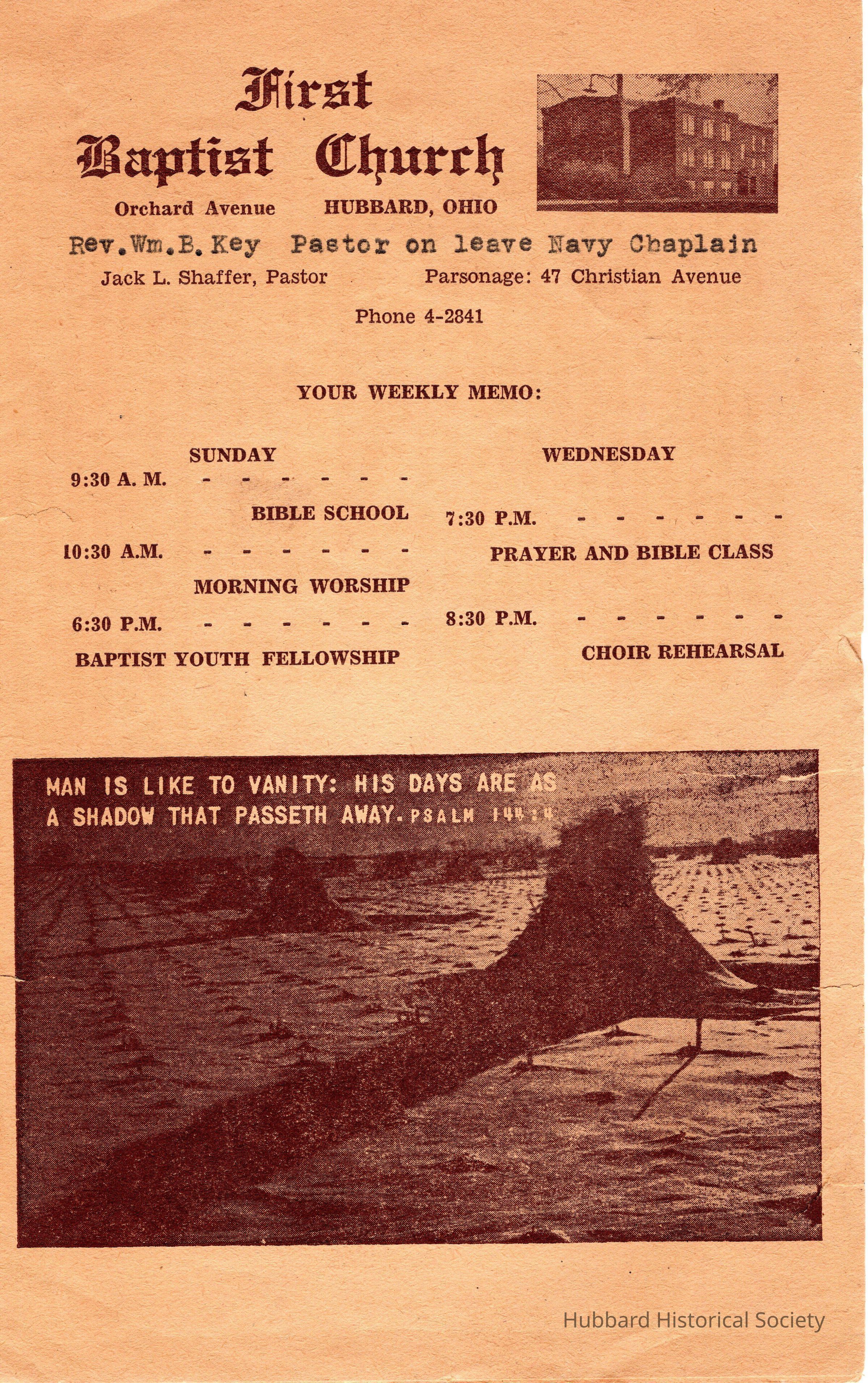First Baptist Church: Your Weekly Memo, 1945Entry/Object ID