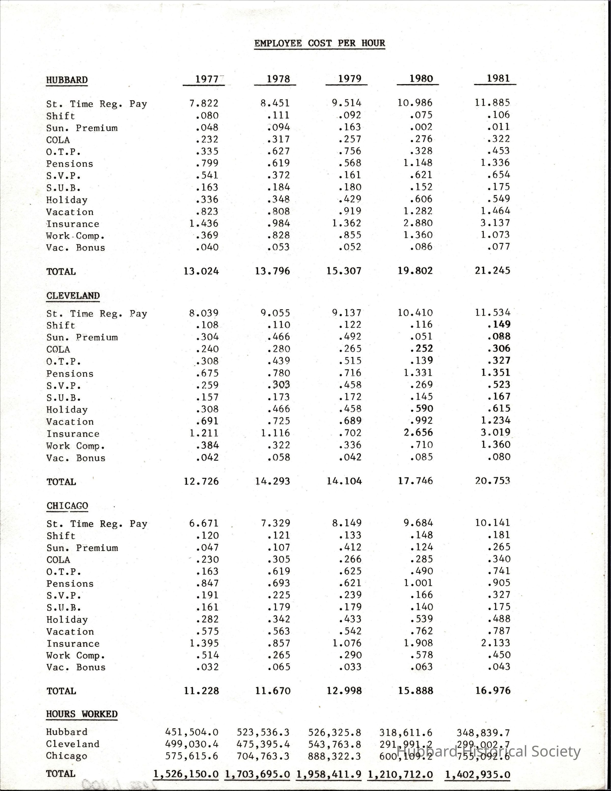 Valley Mould Employee Cost Per Hour 1977-81Entry/Object ID