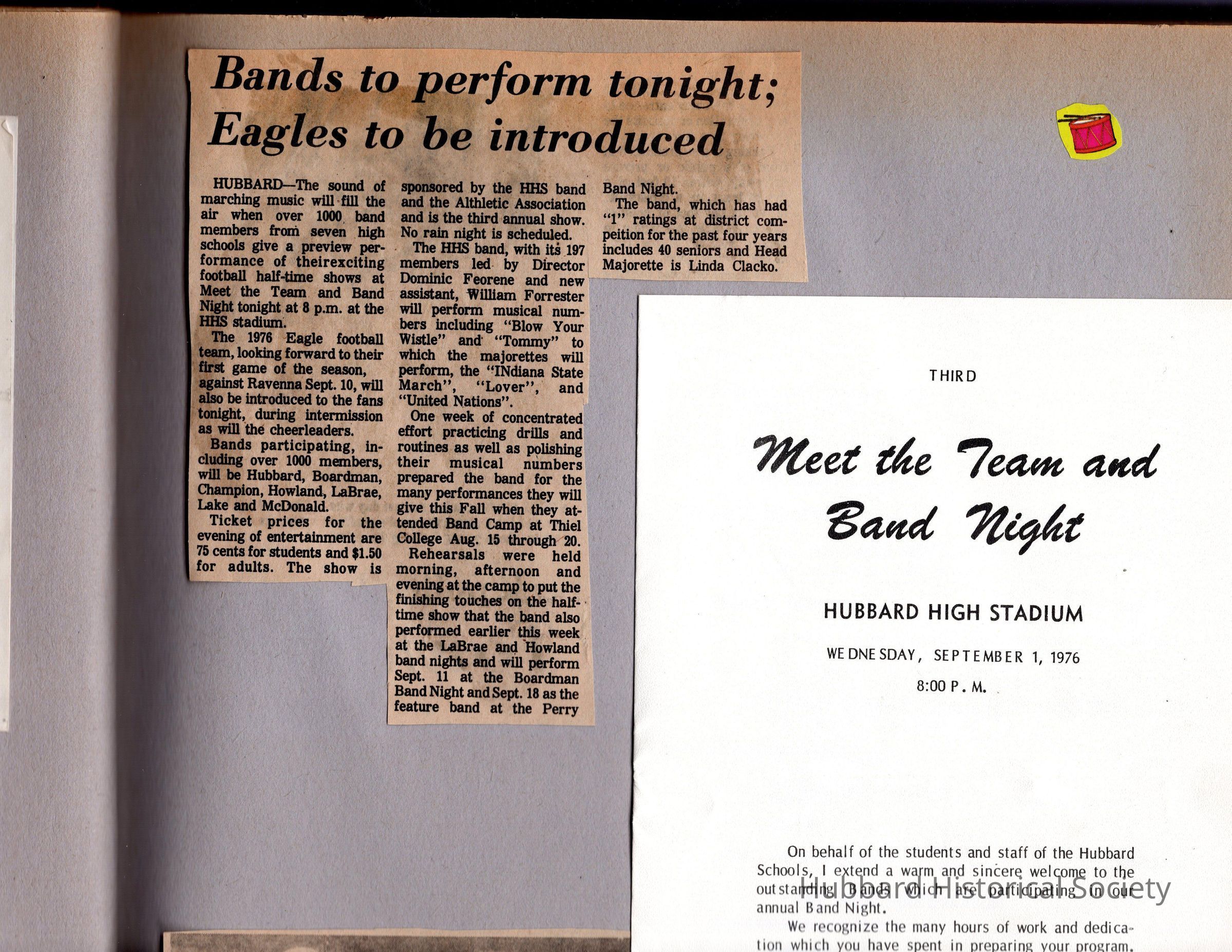 Hubbard High School Band and Athletics album with clippings, pamphlets, programs, etc. from 1976.Cataloged By