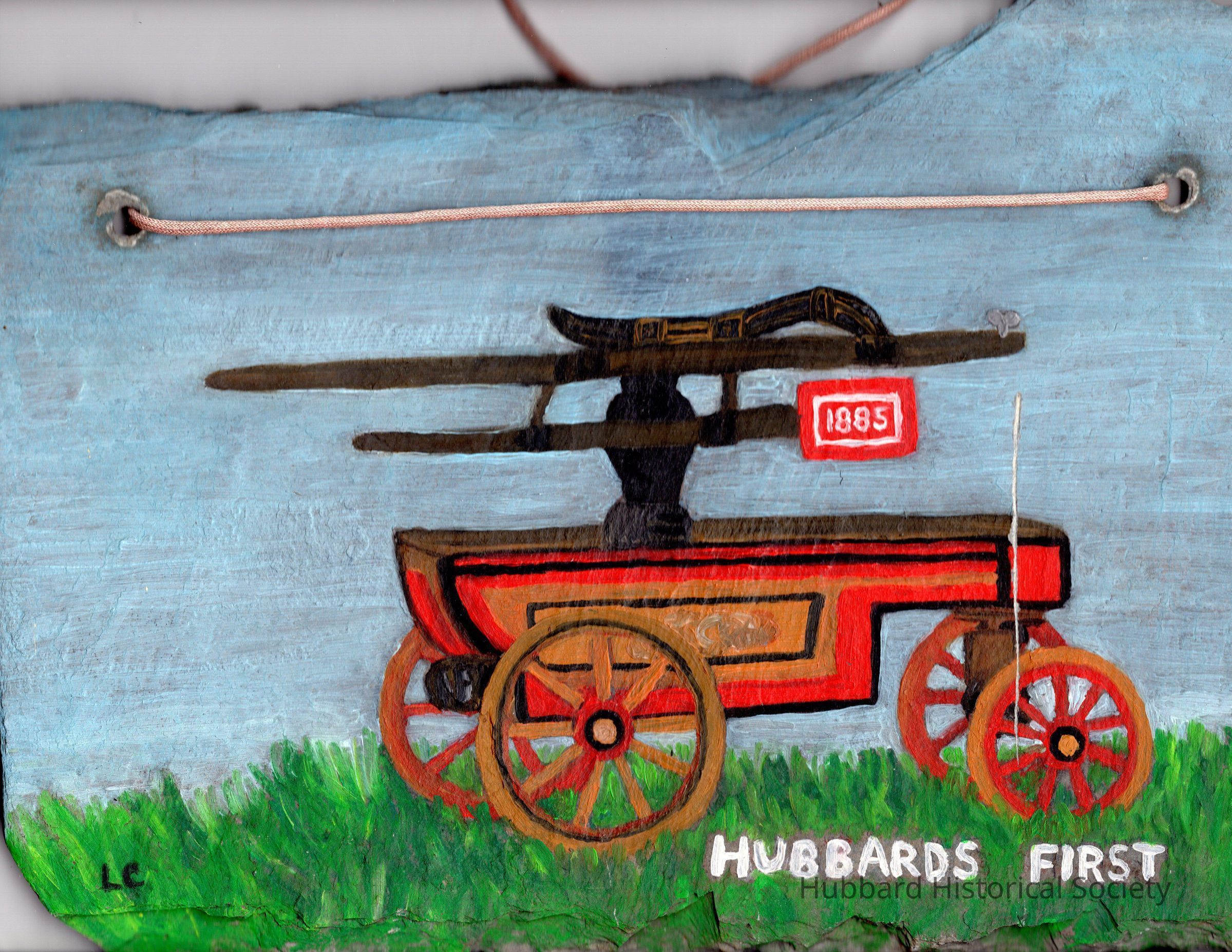 A painting of a Hubbard Fire Truck on a piece of slateCollection