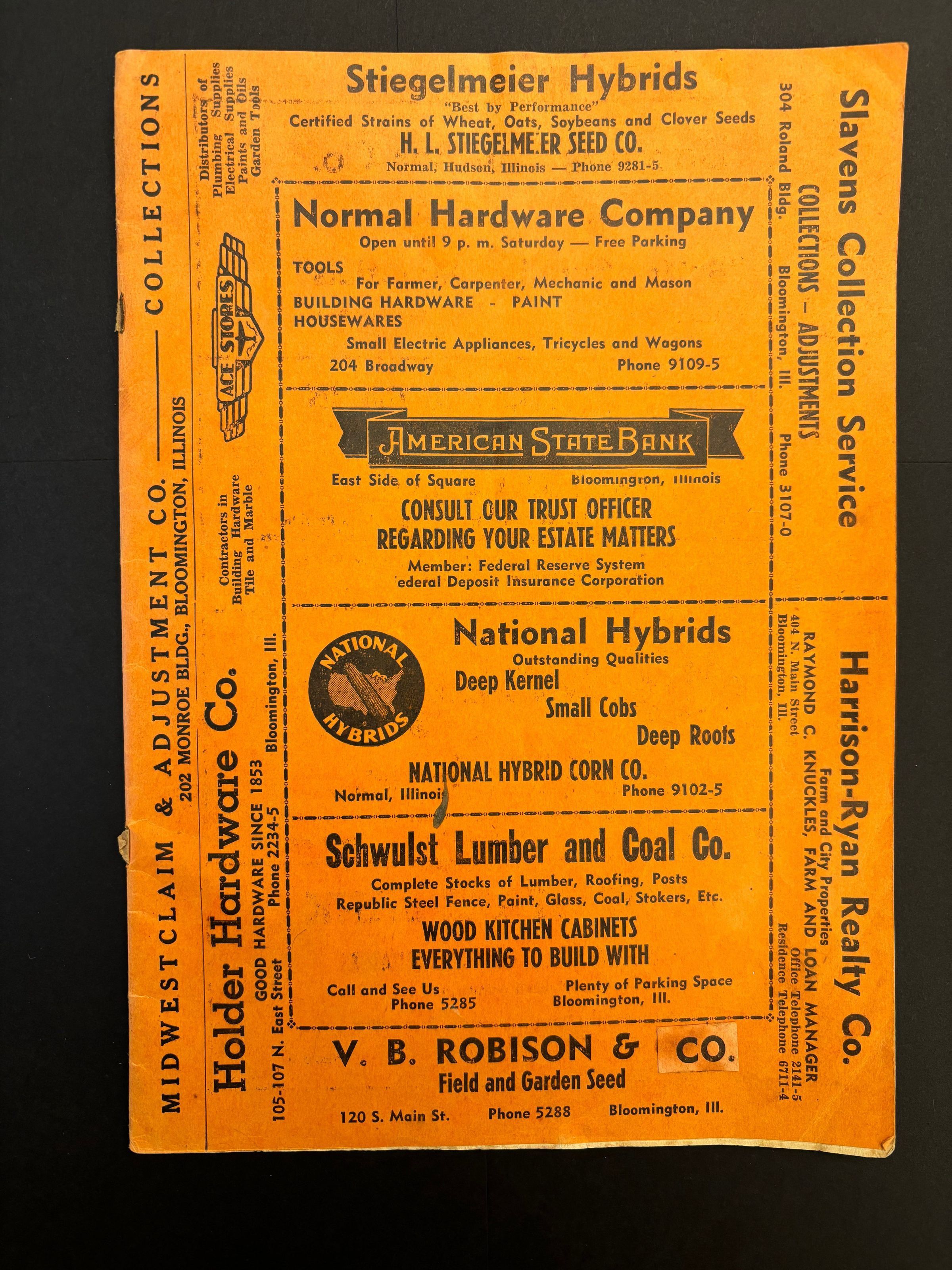 1950 supplement to the McLean County Rural directory business advertising booklet.