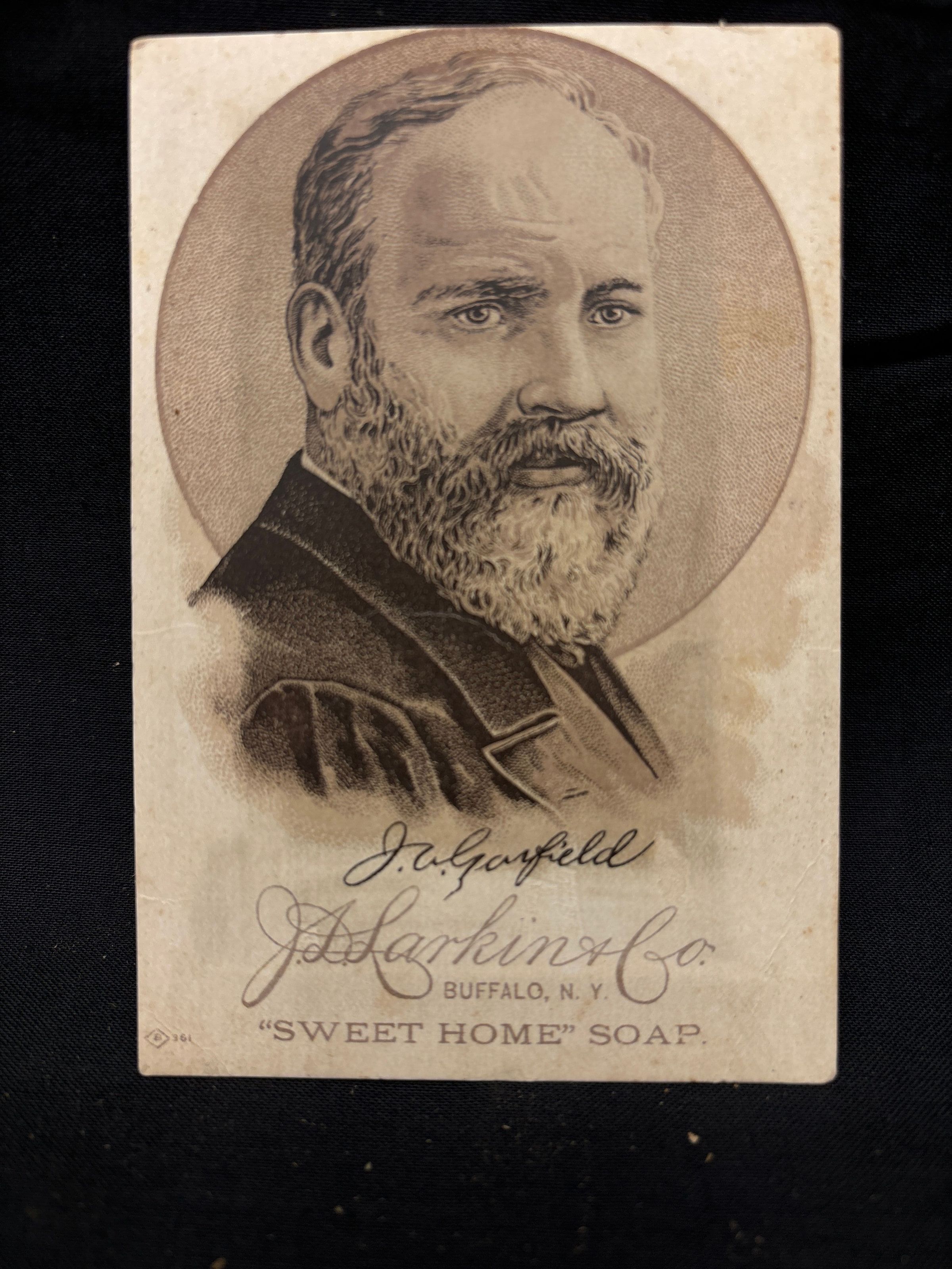 Sweet Home Soap trading card of President J. A. Garfield.
