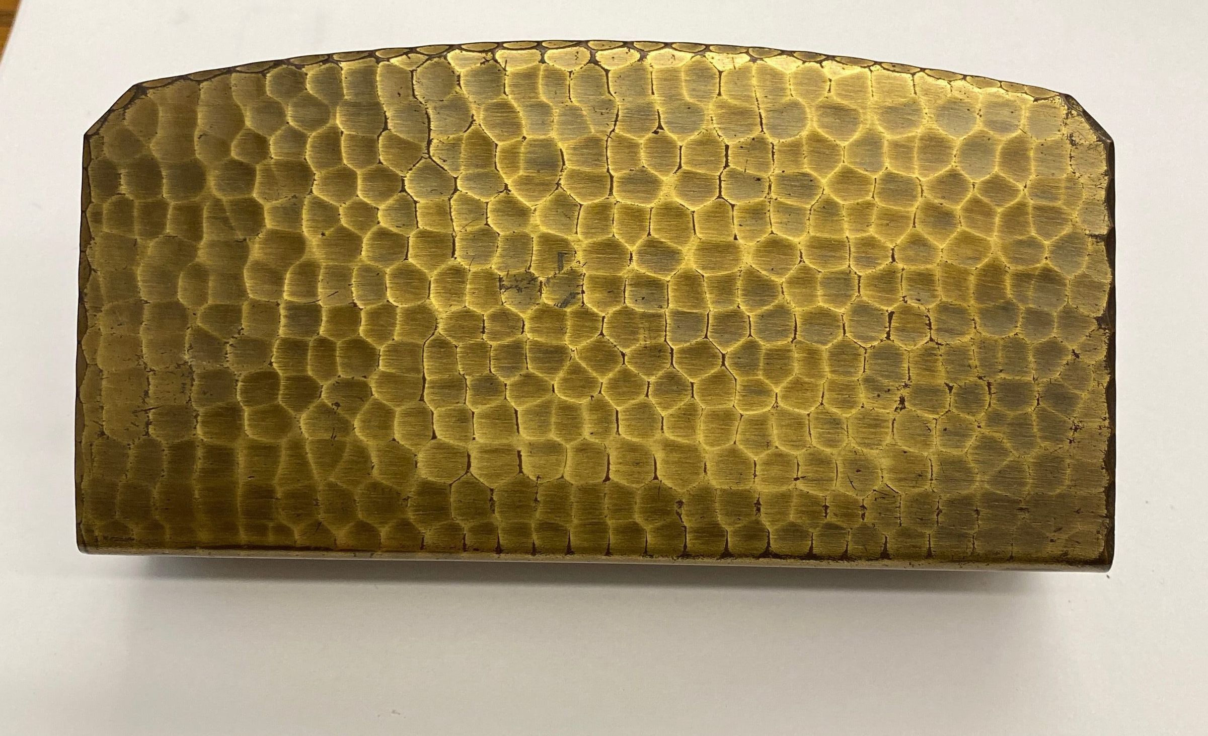 Hammered copper letter rack, stationary/envelope holder. With Middle Mark 1915-1925.