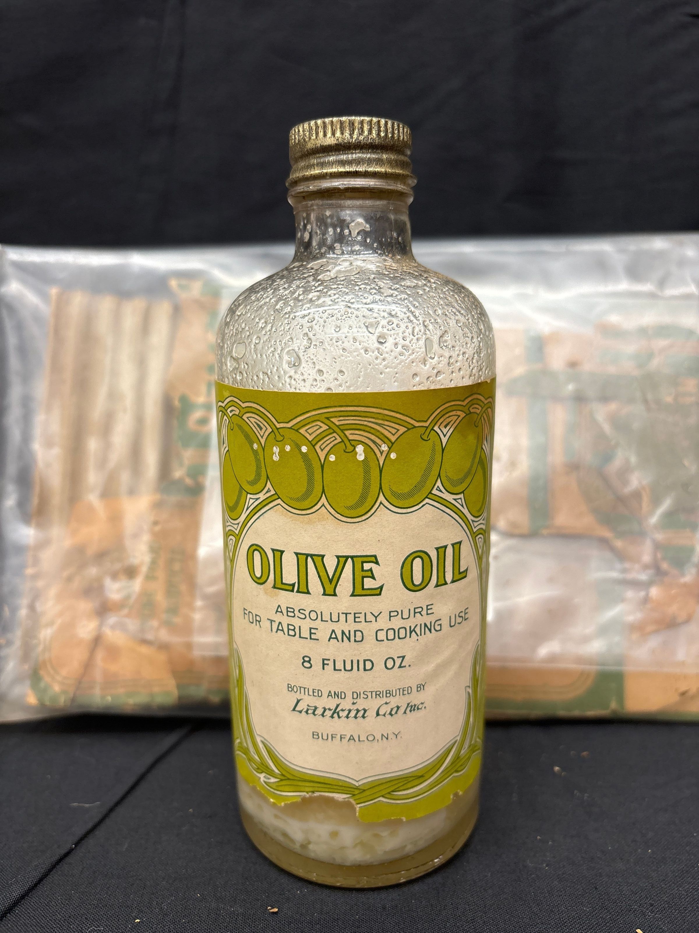 Glass bottle of Olive Oil, 8 Fluid Oz. (about half full)