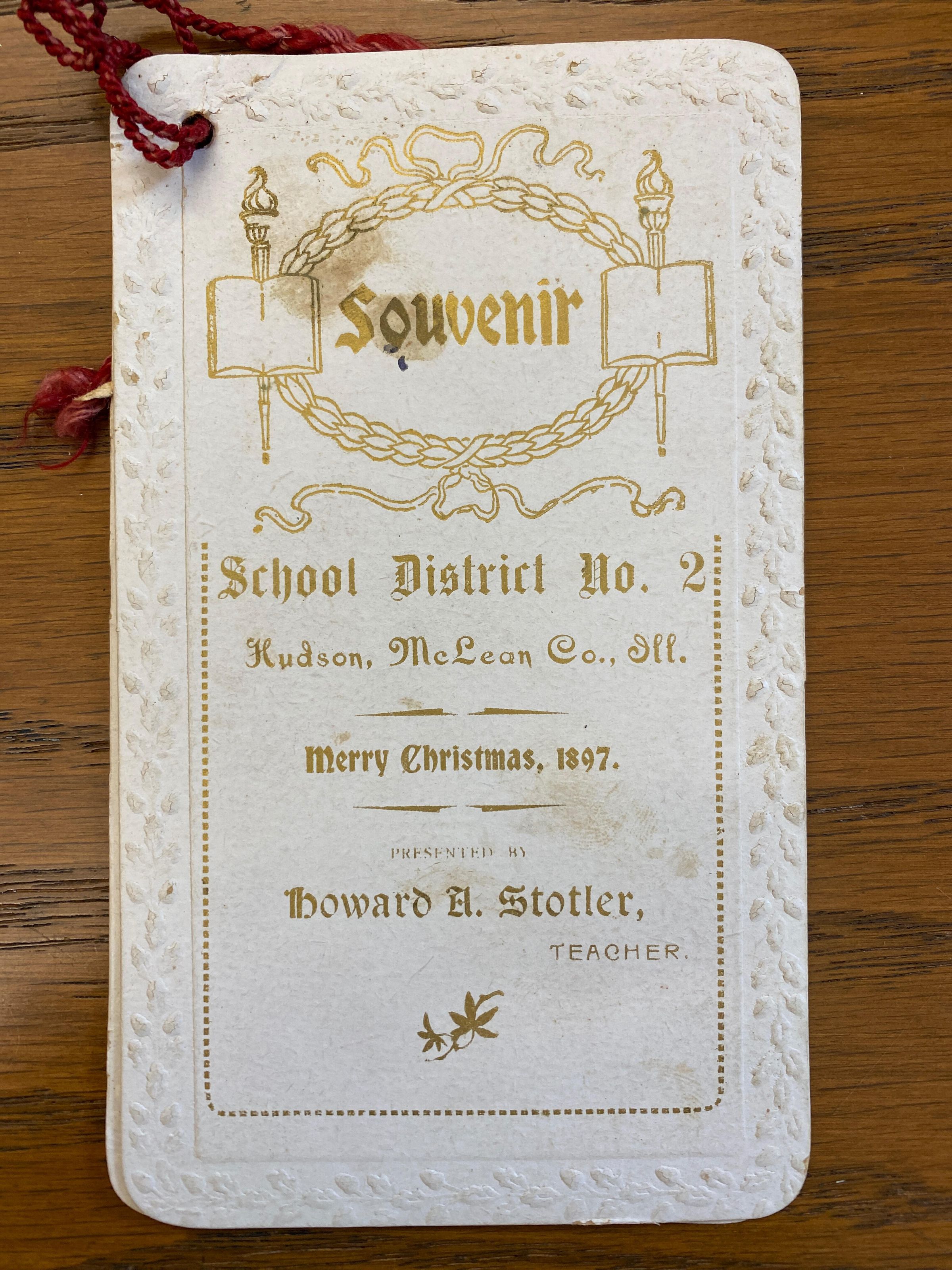 Souvenir Booklet for School District No. 2, Hudson, McLean Co., Ill. Merry Christmas, 1897. Presented by Howard Stotler, Teacher