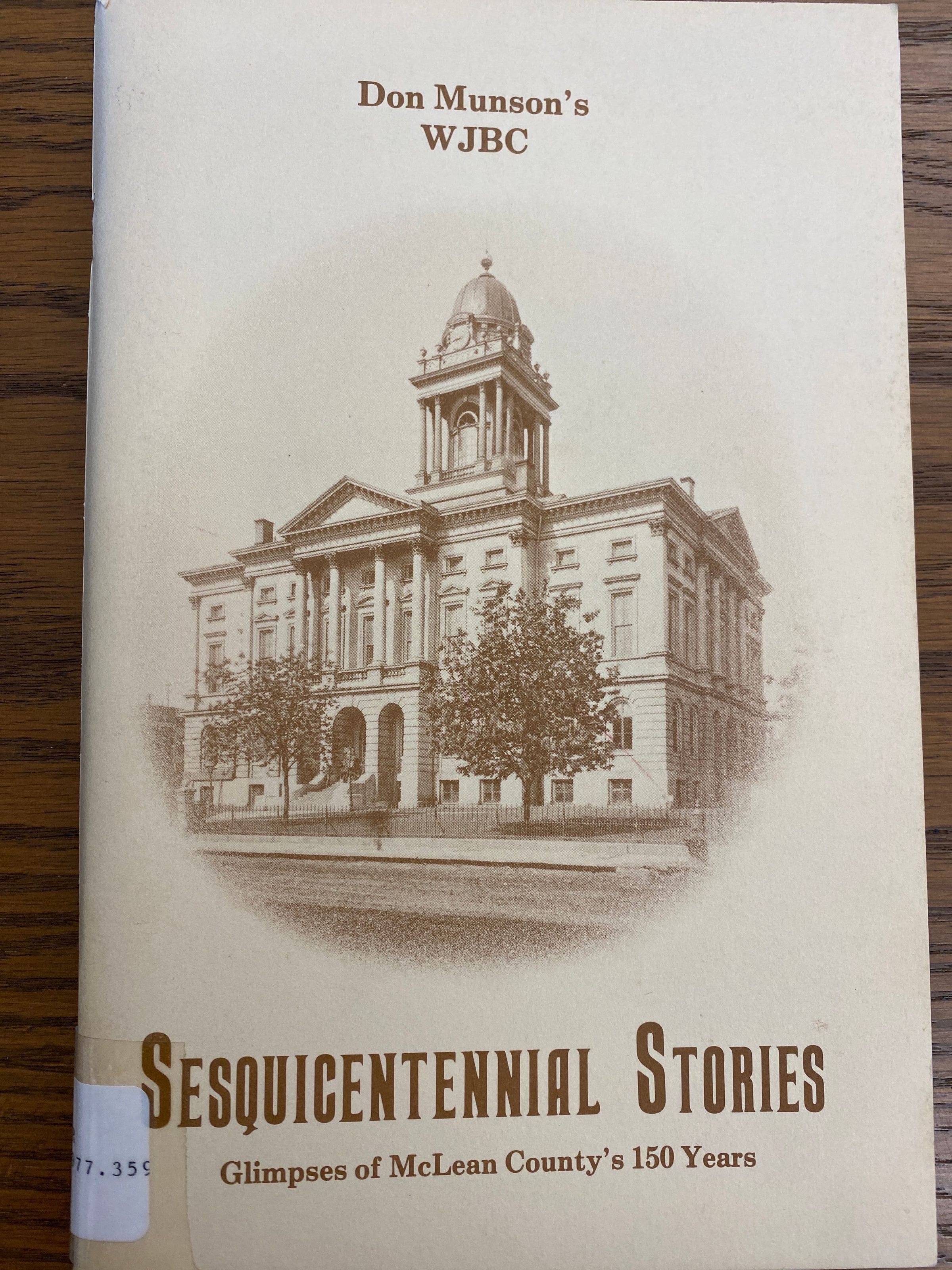 Glimpses of McLean County's 150 Years; Page 6 "Three Celebrities from Hudson"; insribed, "To Maryann on Christmas 1980 from Tom and Phyllis Gumbrell (note page 6)" Paperback p. 68