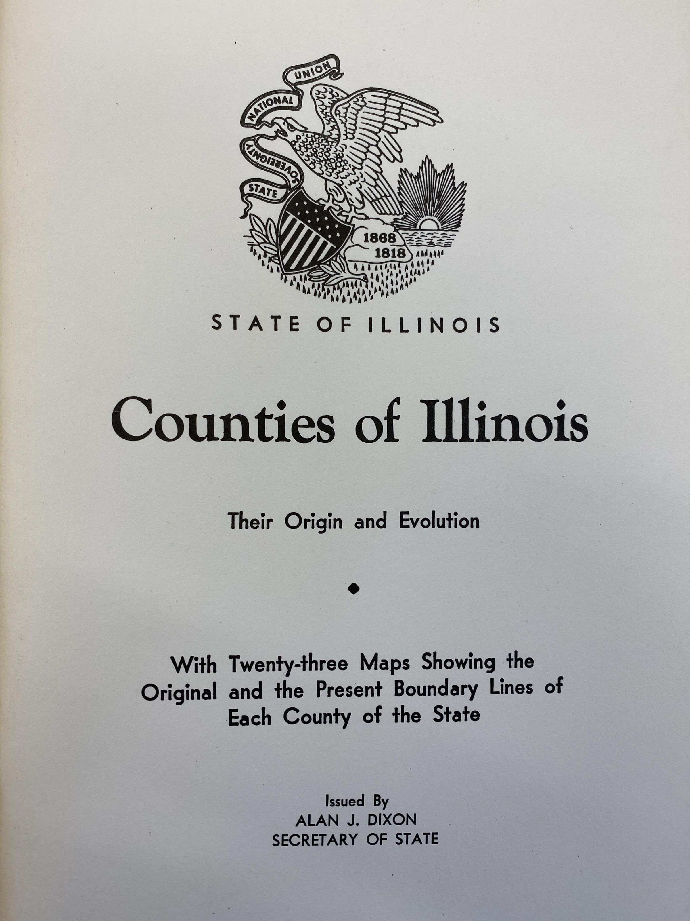 Twenty-three maps showing the original and present boundary lines of each county of the state (of Illinois); population statistics; biographical data