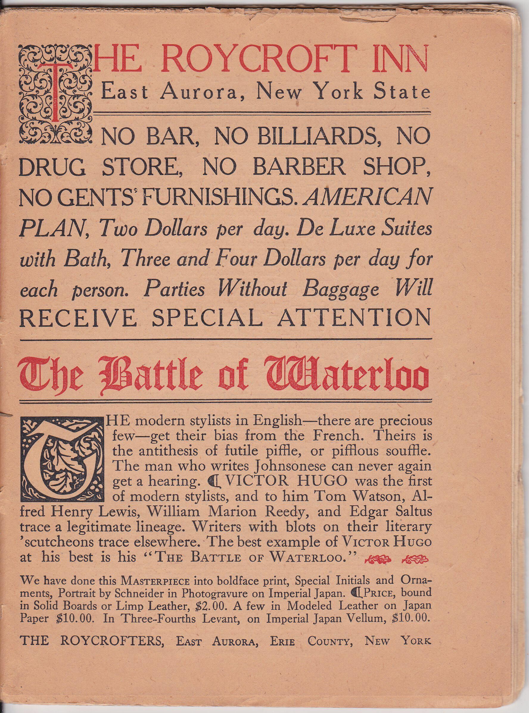 6 x 7 3/4 softbound cover that is frayed at the edges and yellowed. Printed by the Roycrofters in East Aurora, NY. Theodore Parker was very influential in the abolutionist and trancendentalist movements.