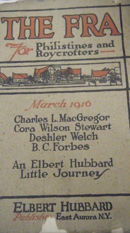 The Fra for Philistines and Roycrofters, March 1916. Paper cover is torn and frayed.