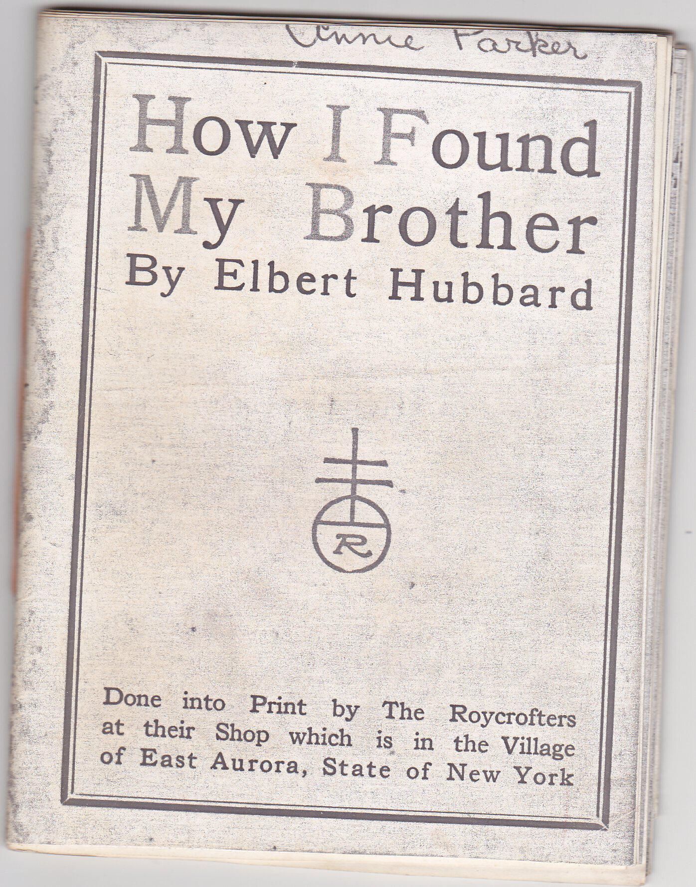 25 pages, paper bound black and white cover, printerd by The Roycrofters in East Aurora, New York.