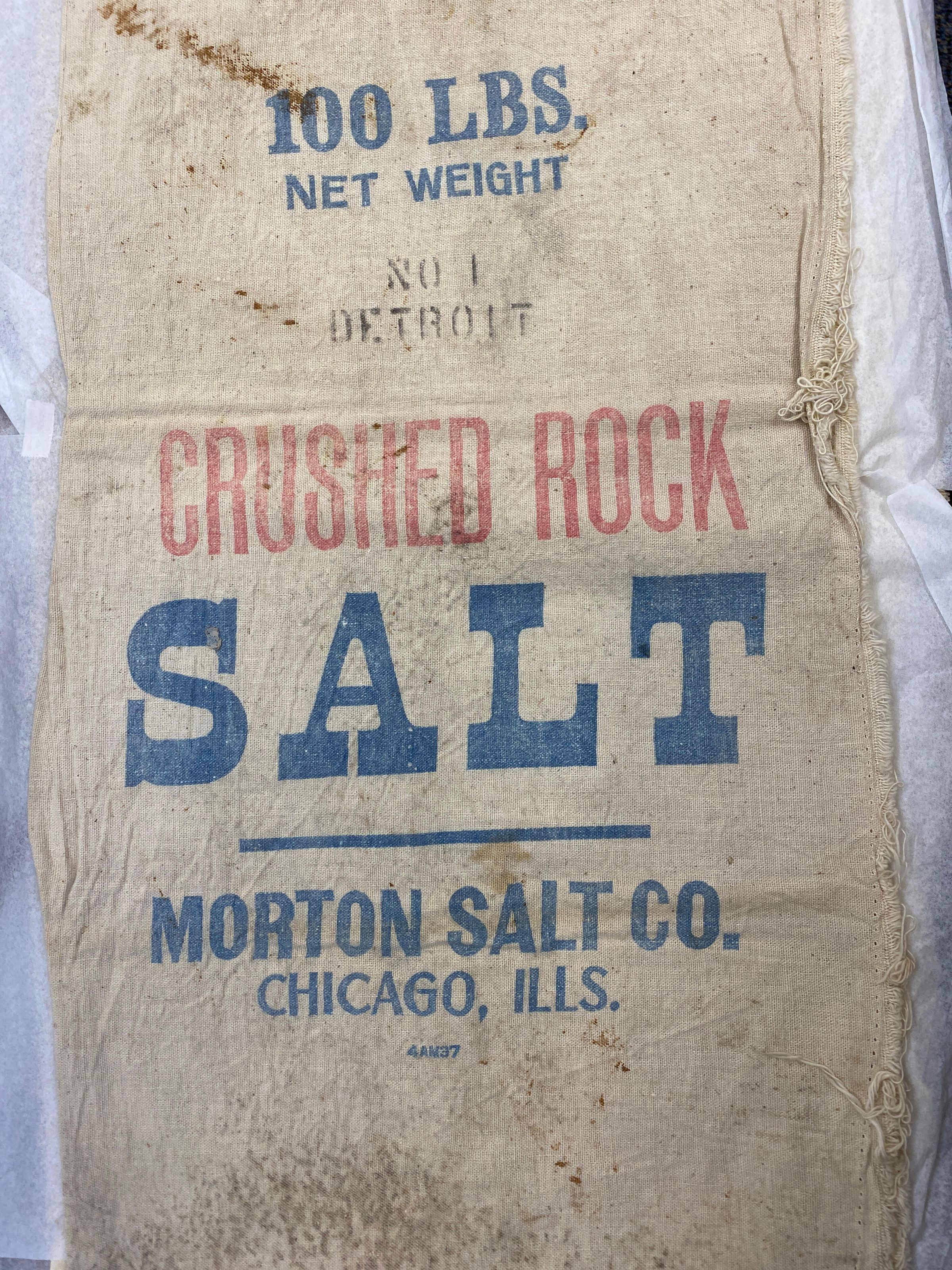 Bag to hold 100 lbs. Crushed Rock Salt, Morton Salt Co., Chicago, ILLS. 15" x 35"