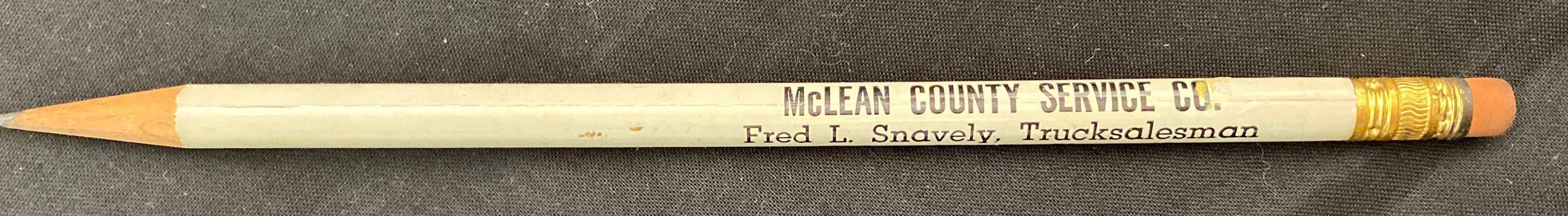 No. 2 lead pencil imprinted with "McLean County Service Co., Fred L. Snavely, Trucksaleman, Hudson, Ill. Phone 46"