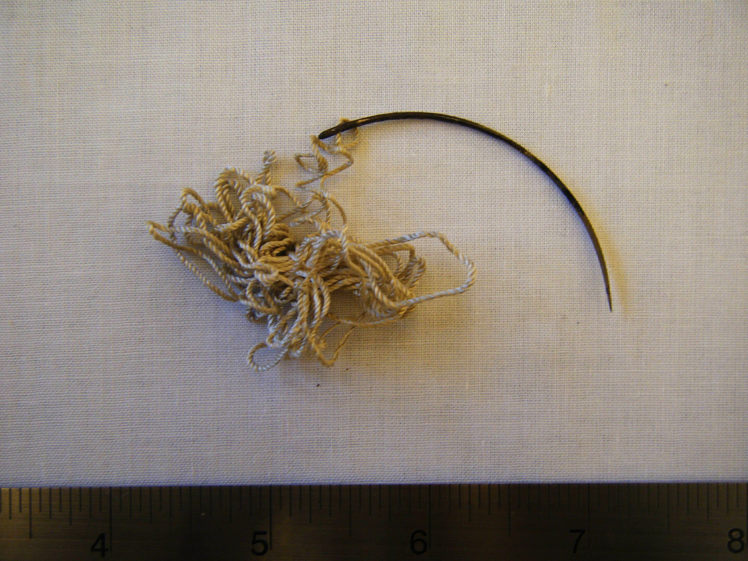 Suture needle, taper point, 1/2 circle, medium size; suture thread