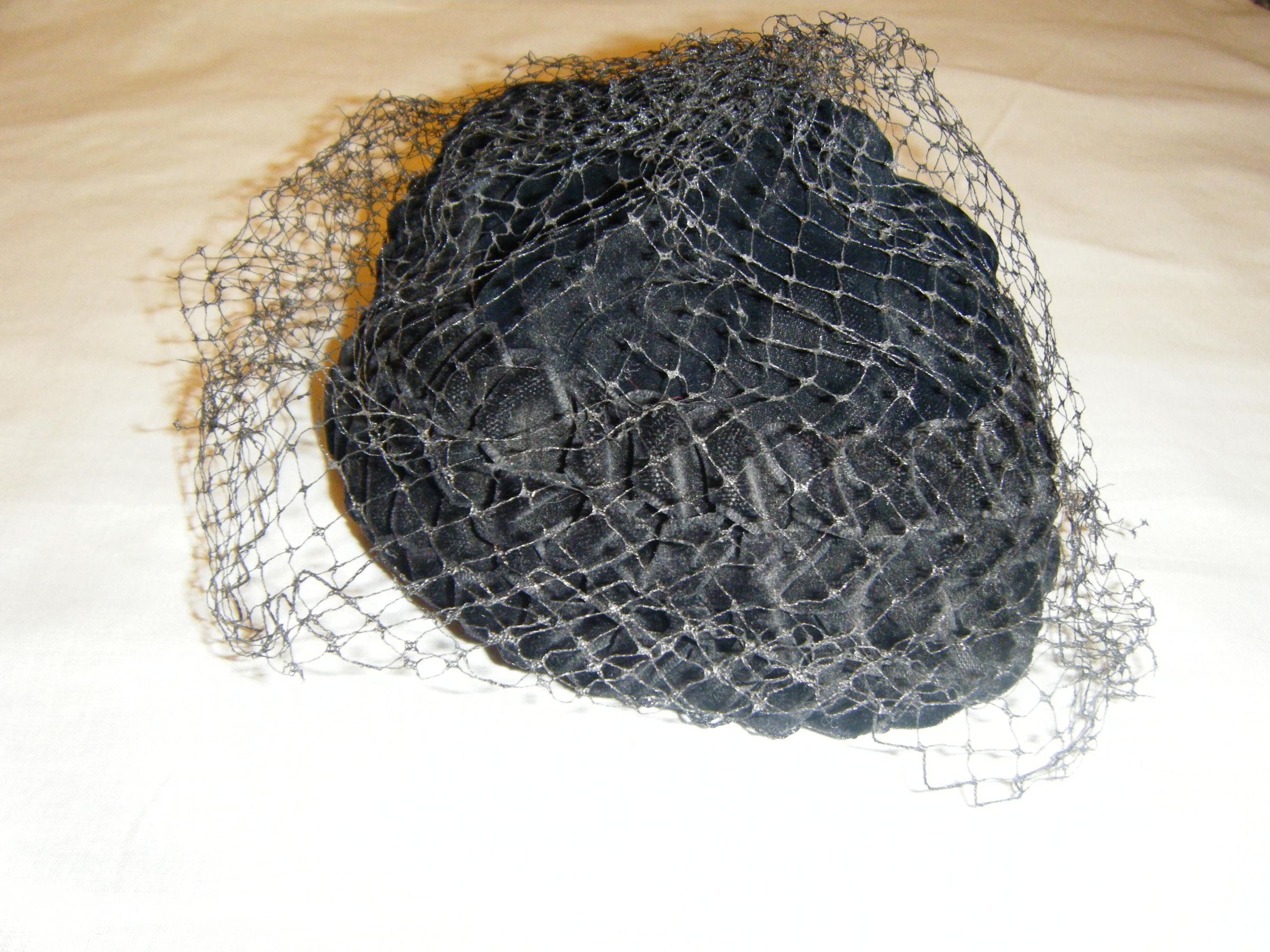 Woman's black hat with top veil.