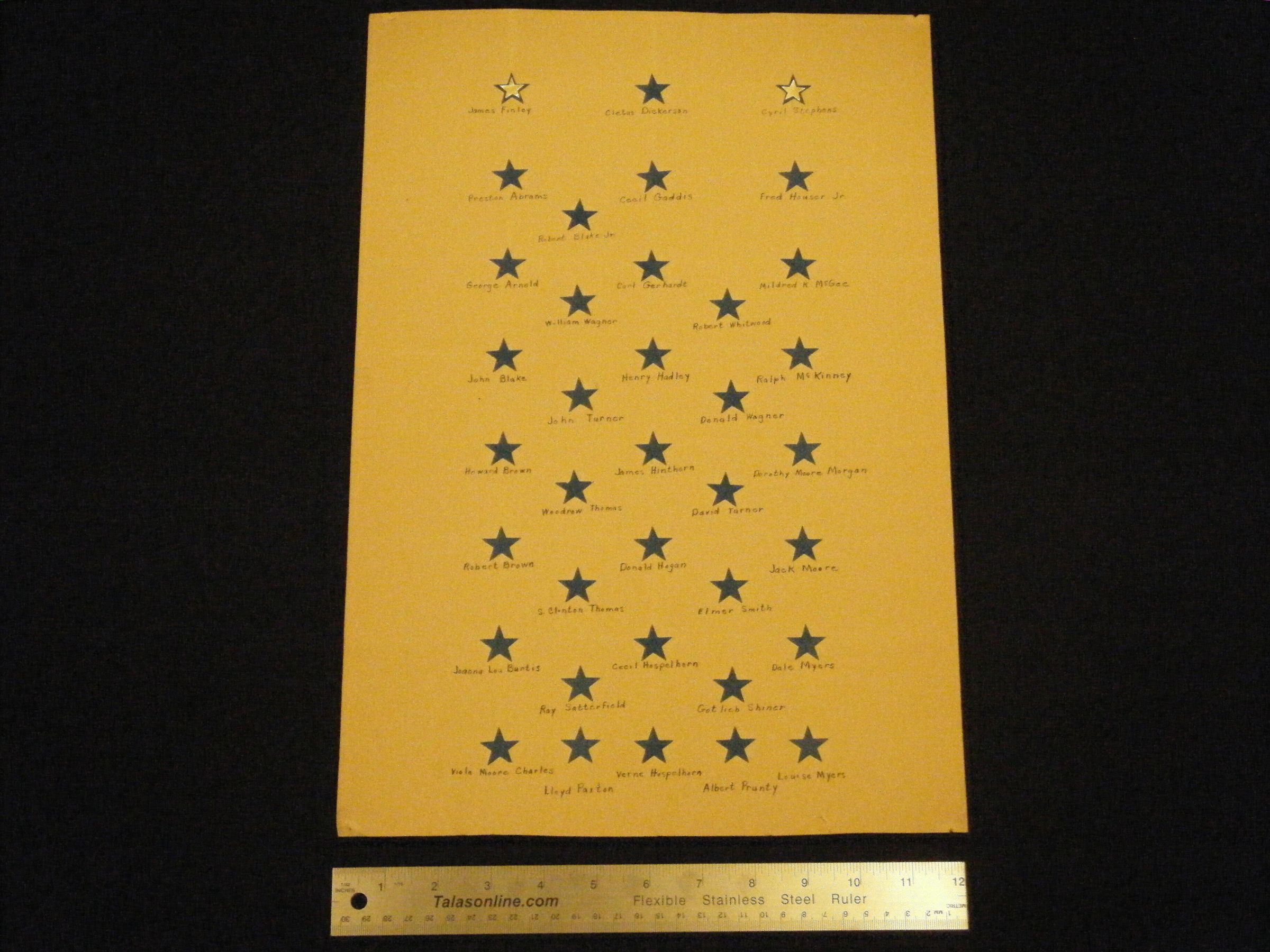 A diagram, naming the stars for a particular serviceman, on the Service Flag (2004.6.1