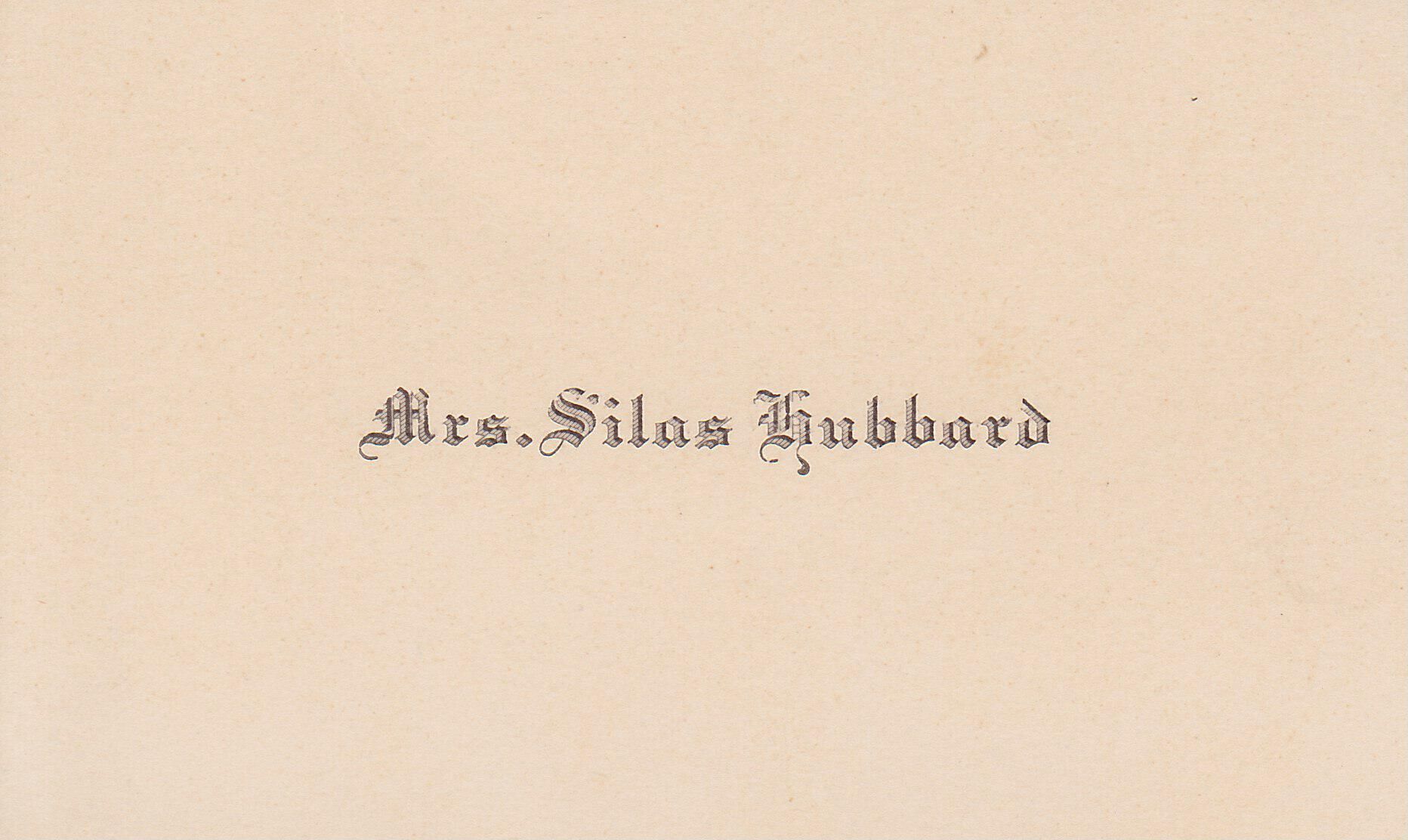 Calling card -- visiting card is a small paper card with a person's name printed on it. Various forms of etiquette governed it's use. Precursor to the business card of today.