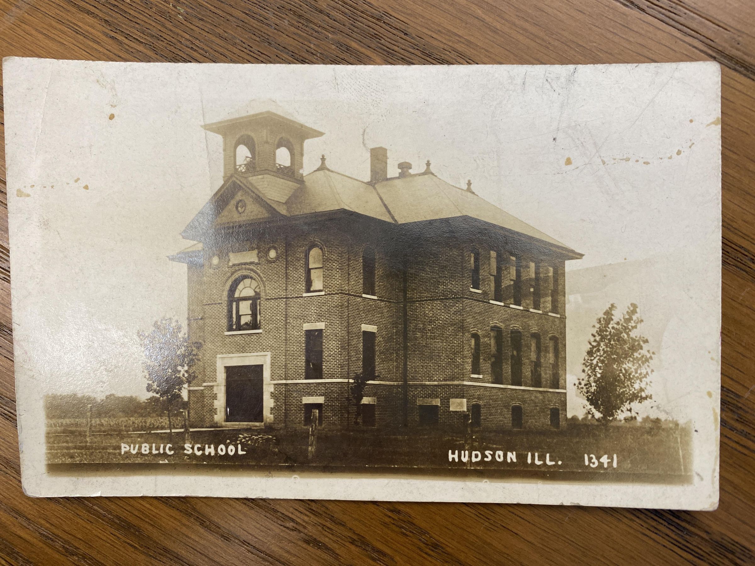 A blank postcard depicting the Hudson Public School. Built in 1906 and burned down in 1914.