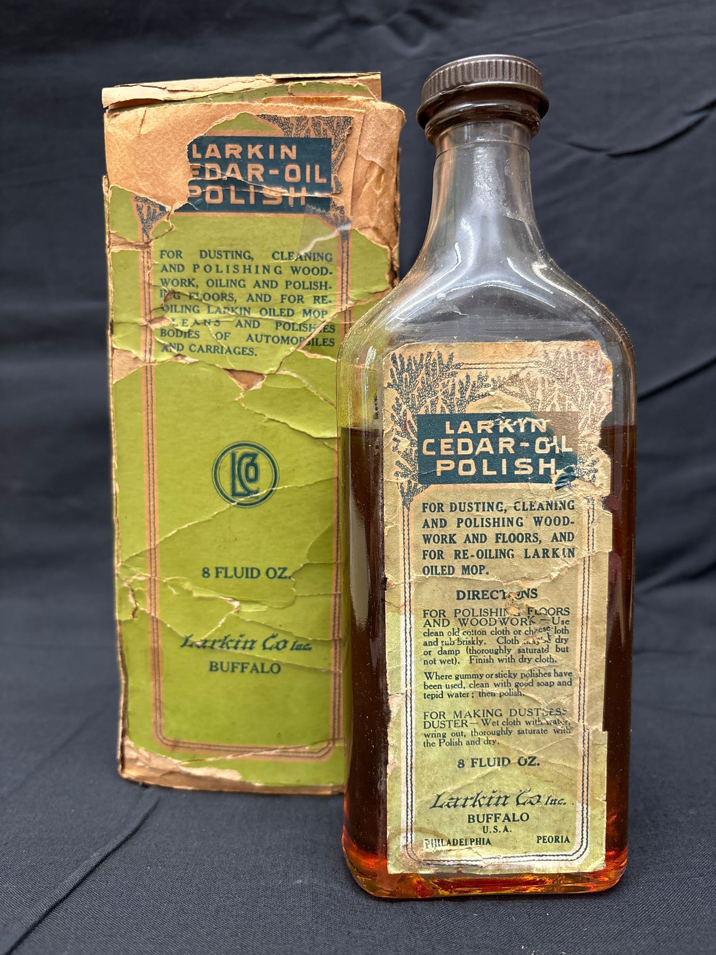 Larkin Cedar-Oil Polish glass bottle with fluid