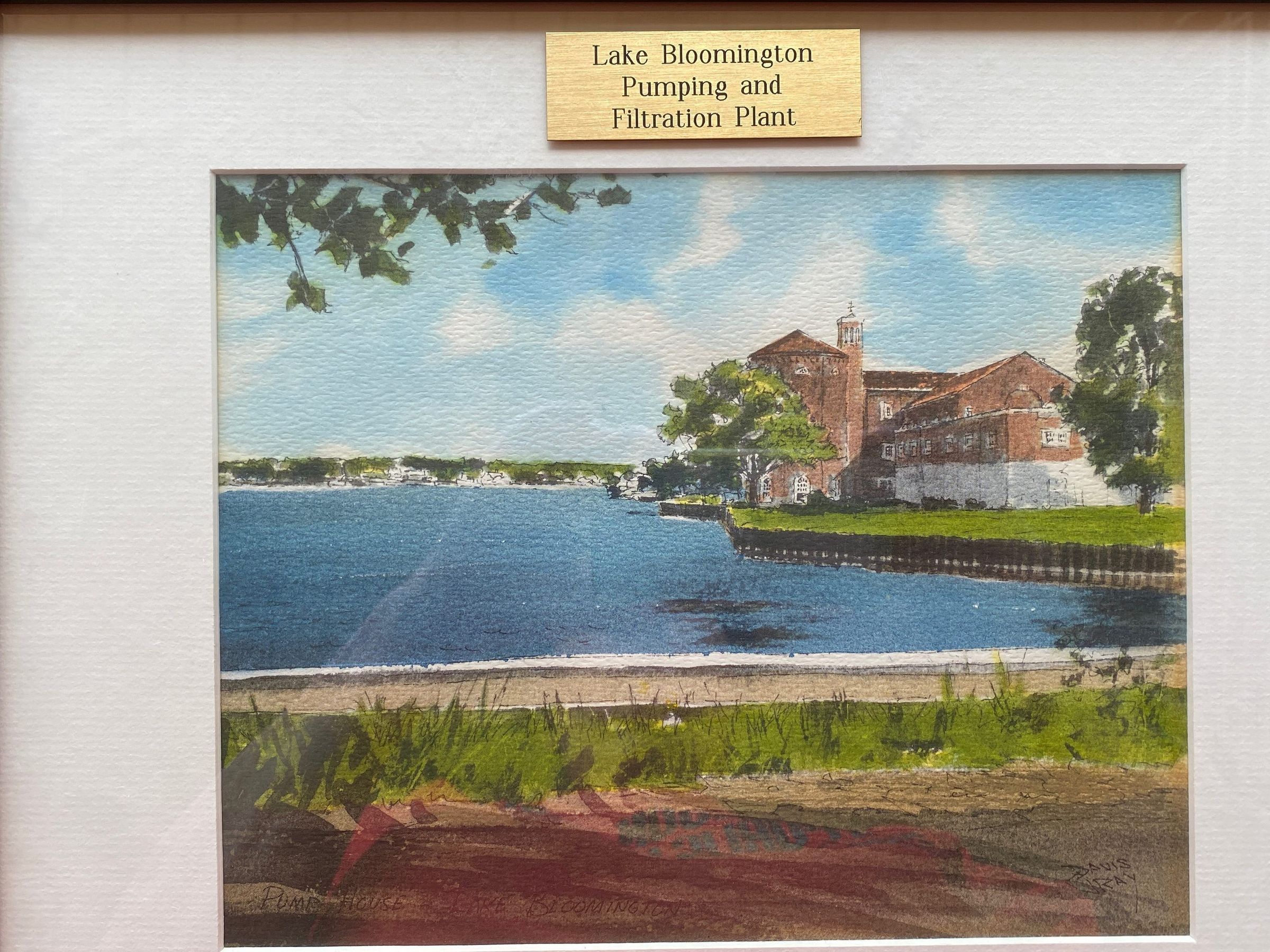 Framed and matted 8X10 watercolor print of the Pump House at Lake Bloomington by Davis Gray.
