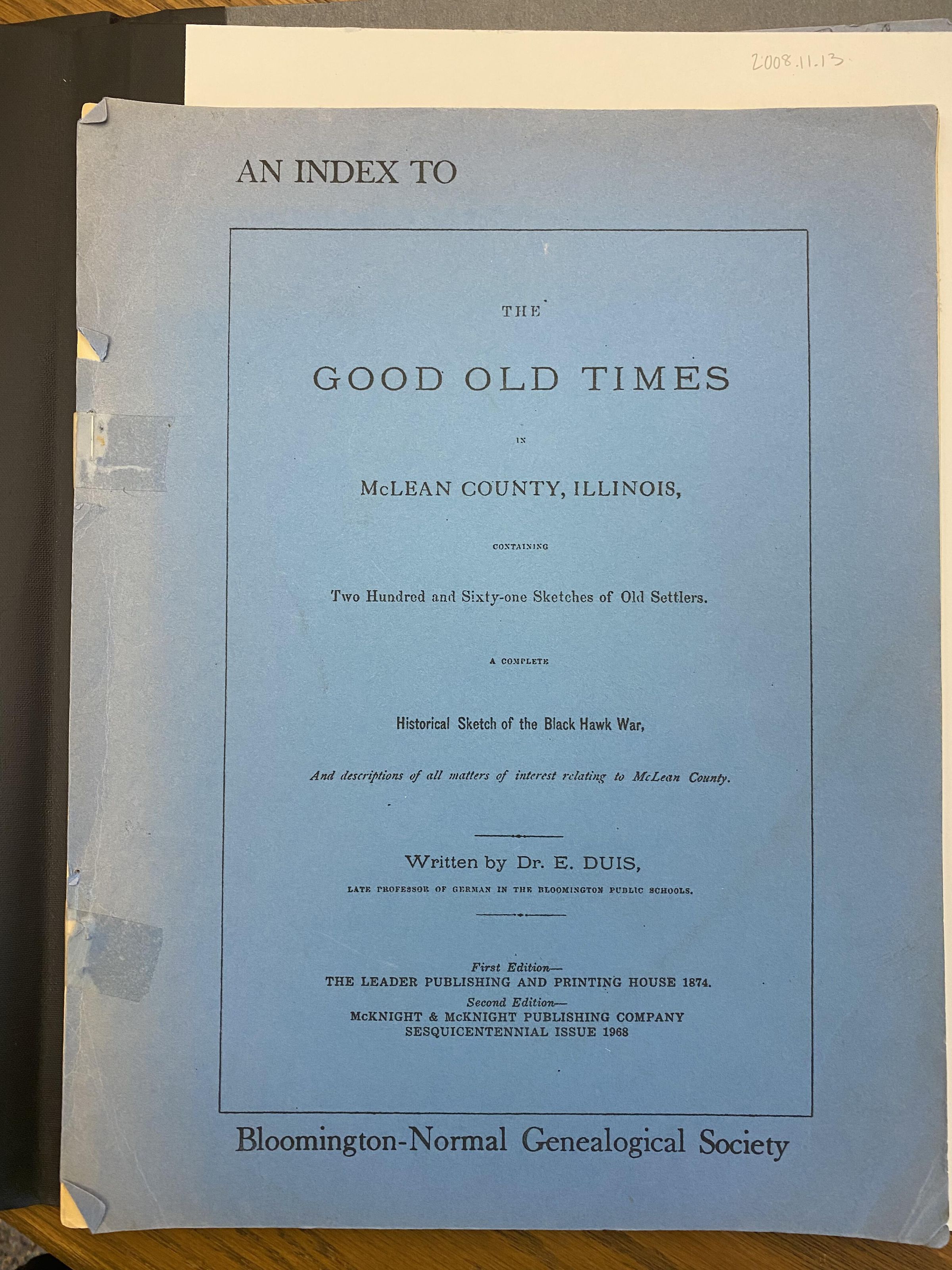 An Index to The Good Old Times in McLean County, IllinoisDescription