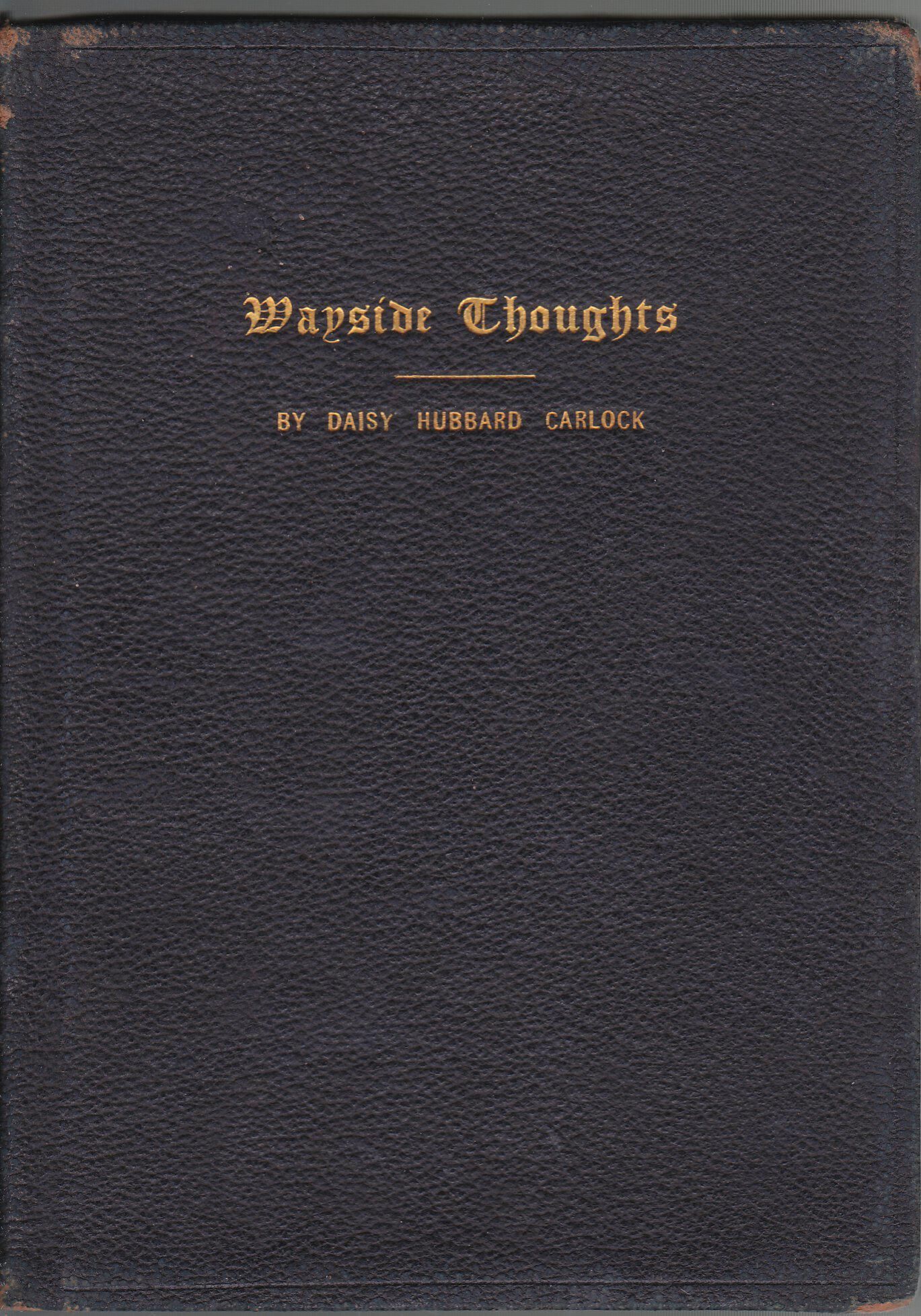 Poems and remembrances of Daisy Hubbard Carlock. Mrs. Silas Hubbard's calling card is inside the cover. Inscribed to Mollie V. Johnston from Mrs. Silas Hubbard 4 1/2 " x 6 1/4" black leather cover