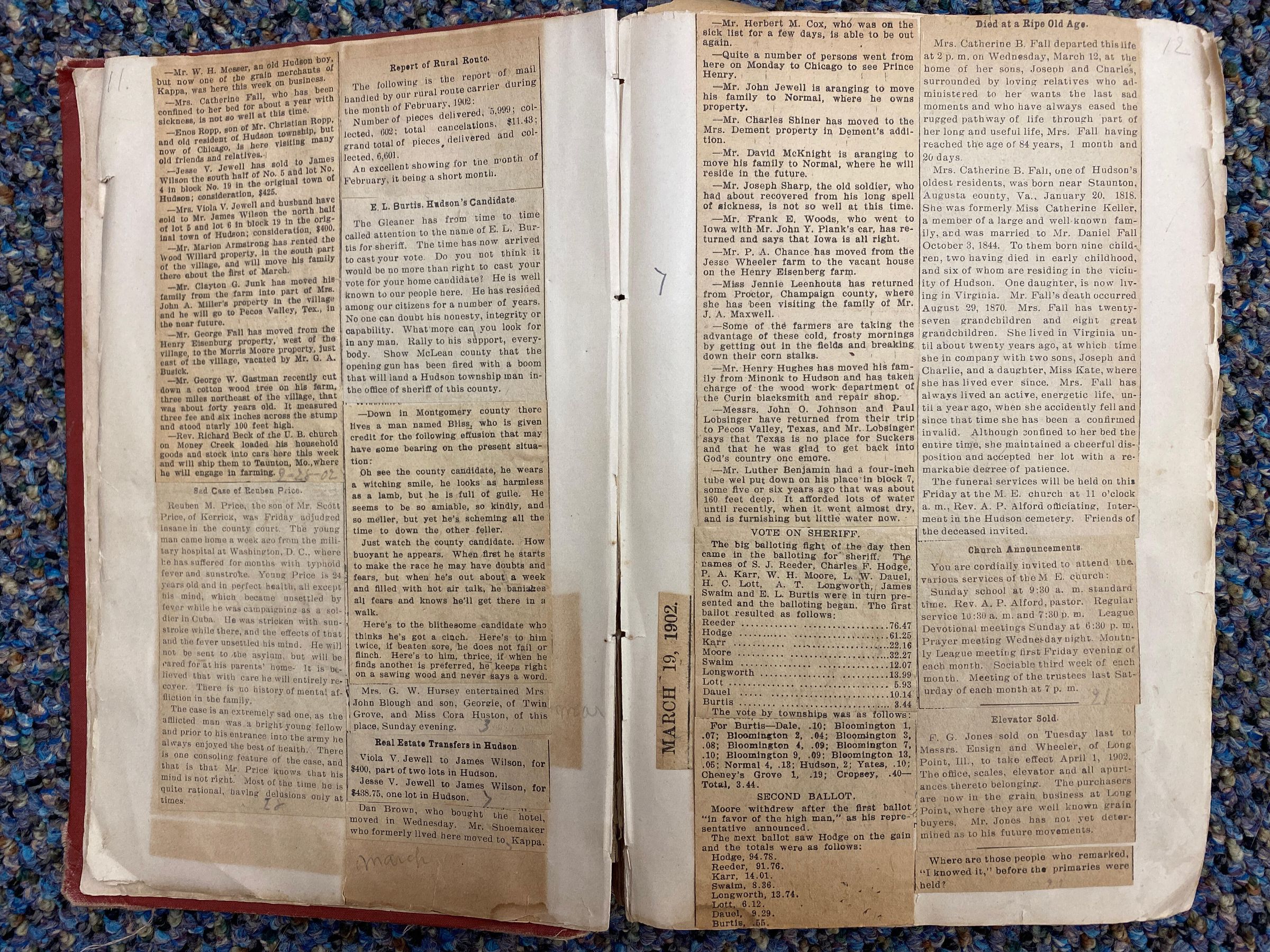 Newspaper clippings pasted onto pages from a book "Report of Railroad Com's Kentucky 1890" 6 1/4" x 9 1/2 " - burgundy cloth bound p. 362 newspaper clippings pasted onto pages